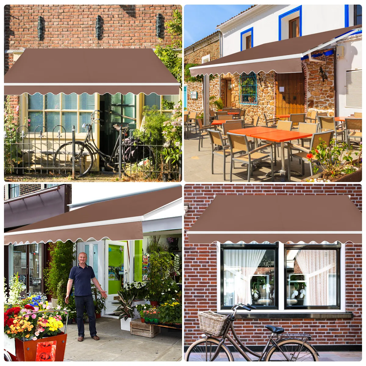 Gemaakt van lichtgewicht maar stevig aluminium en premium polyester, de luifel is stevig en kan voor lange tijd gebruikt worden. Met een grote schuur is de luifel een ideaal hulpmiddel voor het creëren van schaduw. En er is een lange handslinger voor het openen en sluiten van de luifel binnen een minuut. Bovendien kan de hoek van de luifel worden aangepast van 5-35 graden. Bovendien kan de luifel worden geïnstalleerd in verschillende oppervlakken, zoals cementwand of metselwerk. Deze luifel beschermt uw huis of café’s efficiënt tegen schade door de zon of motregen en houdt de binnenkant van uw huis koel op warme dagen.