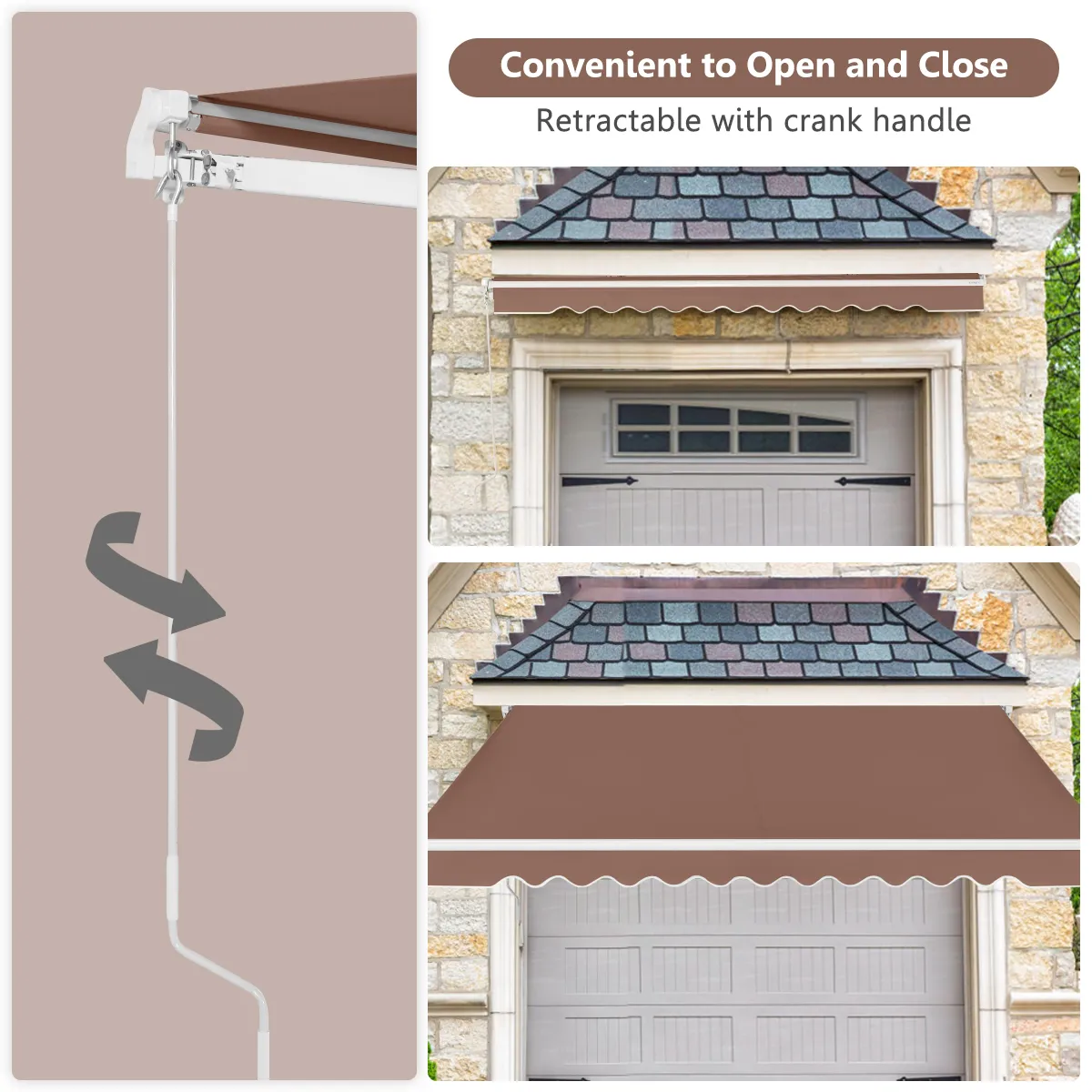 【Intrekbaar ontwerp voor eenvoudig gebruik】De luifel kan worden ingeschoven als een rol wanneer u hem niet hoeft te gebruiken. Met een lange handslinger is de luifel gemakkelijk en soepel te openen of te sluiten. U hoeft alleen maar de slinger met de klok mee of tegen de klok in te draaien.