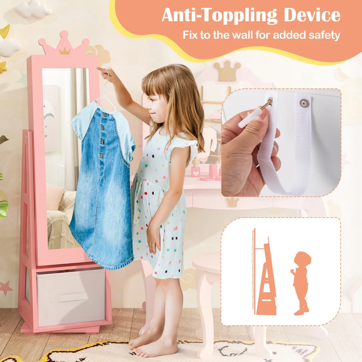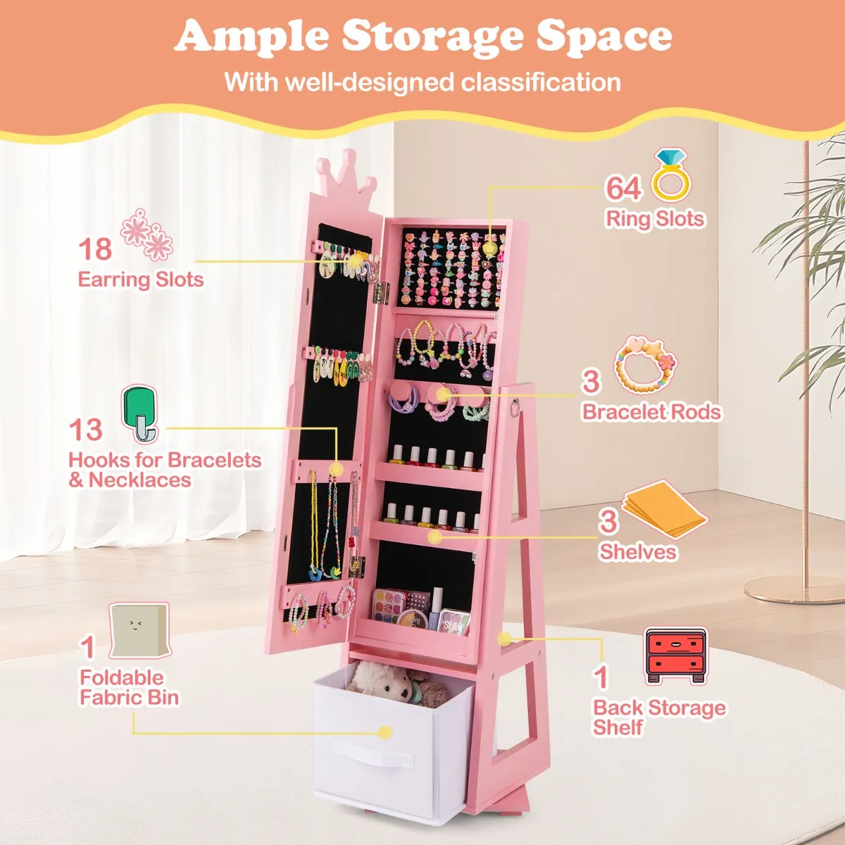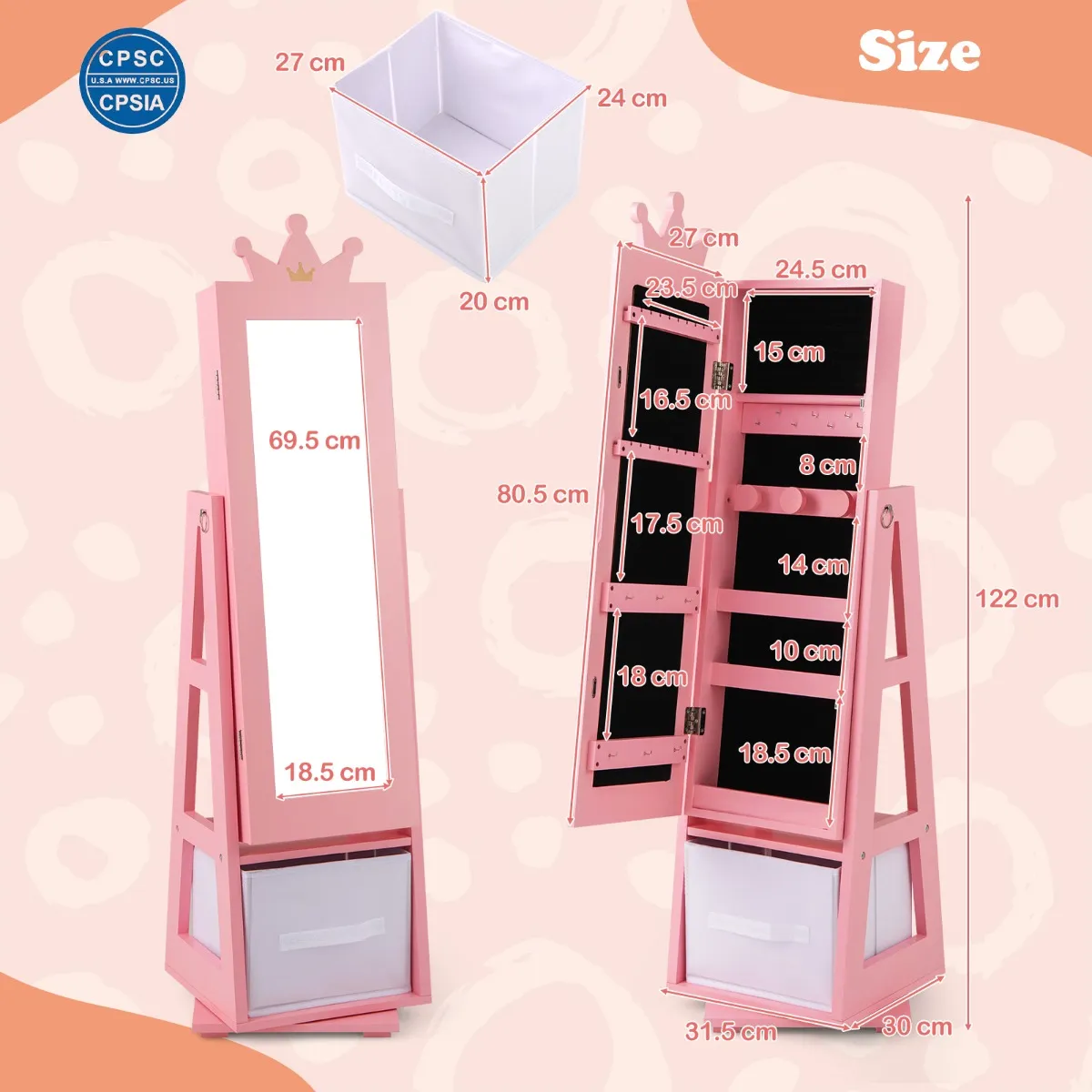 【Ruimtebesparende opbergoplossing】: Met een multifunctioneel 3-in-1 ontwerp combineert deze juwelenkast voor kinderen een spiegel over de hele lengte, opbergruimte voor juwelen en opbergplanken in één eenheid. Het is een geweldige keuze voor compacte ruimtes, zodat je efficiënt gebruik kunt maken van elke vierkante centimeter in de slaapkamer van je kind.