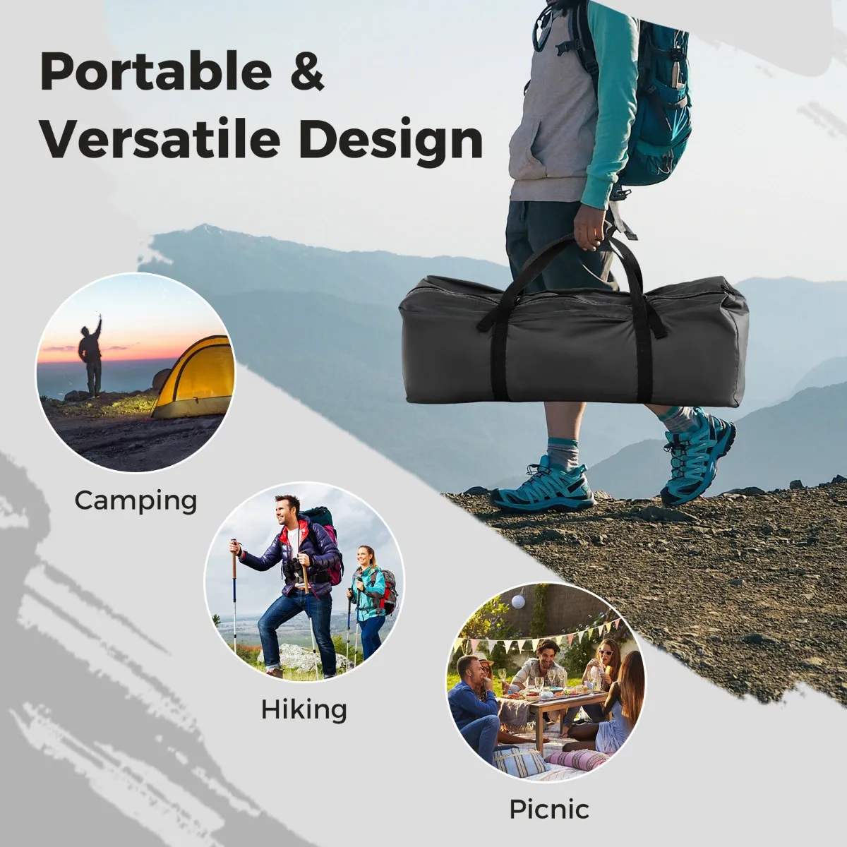 【Grote draagbaarheid en veelzijdigheid】 De luifeltent is gemakkelijk op te zetten en af te breken. En er is een draagtas inbegrepen, zodat je de tent kunt opbergen als hij niet in gebruik is. Je kunt hem ook gemakkelijk vervoeren voor vergaderingen in de open lucht, picknicks en nog veel meer.