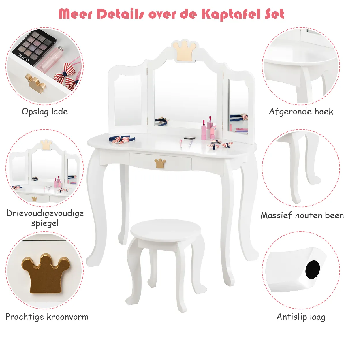 Op zoek naar een prachtig cadeau voor je kind? Onze schattige kaptafelset met spiegel en kruk is de perfecte keuze!
