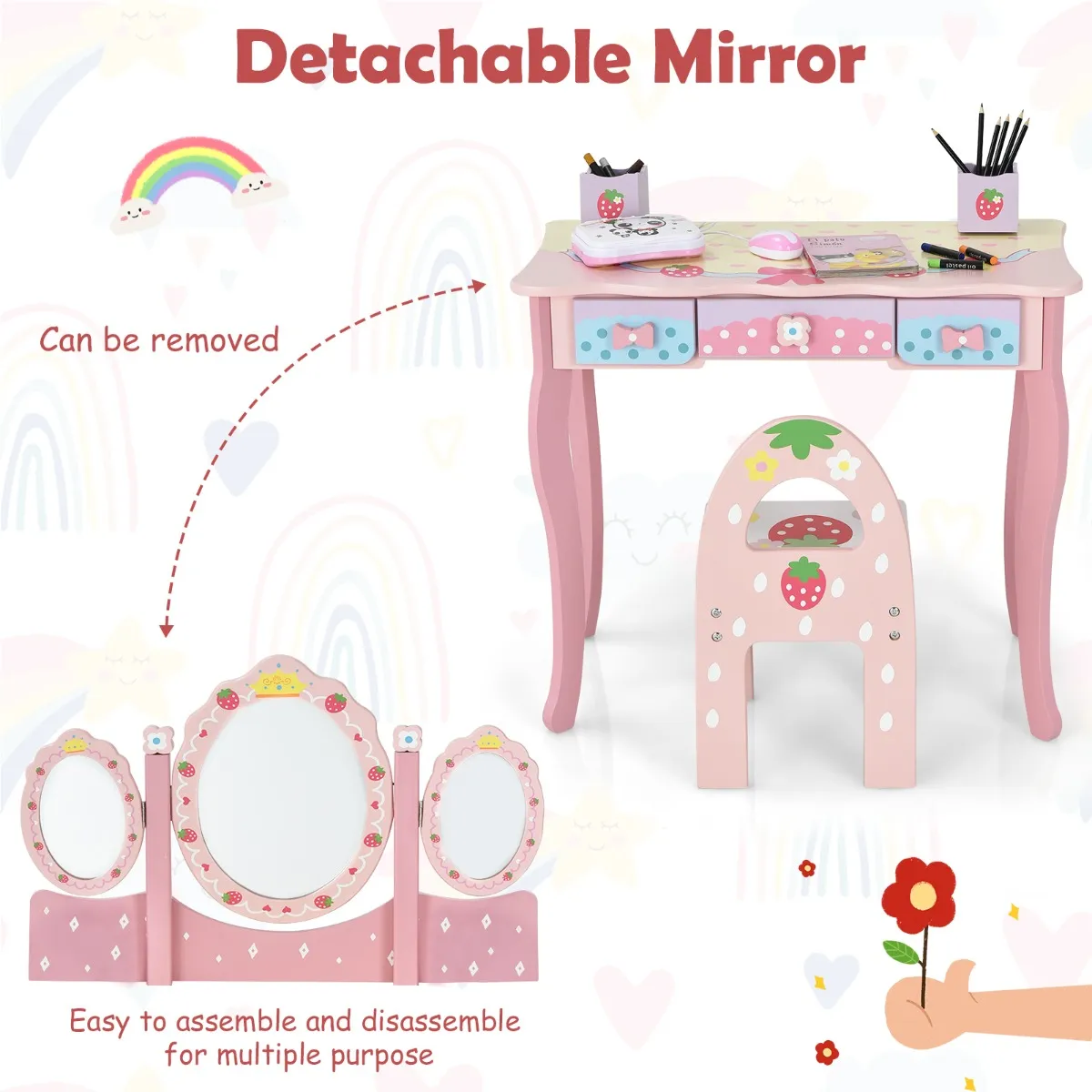 【2-in-1 ontwerp】 Met een afneembaar blad kan deze kaptafel naar wens worden omgetoverd tot een bureau, zodat je kind een multifunctionele ruimte heeft voor verschillende activiteiten, zoals aankleden, lezen, schrijven en tekenen.