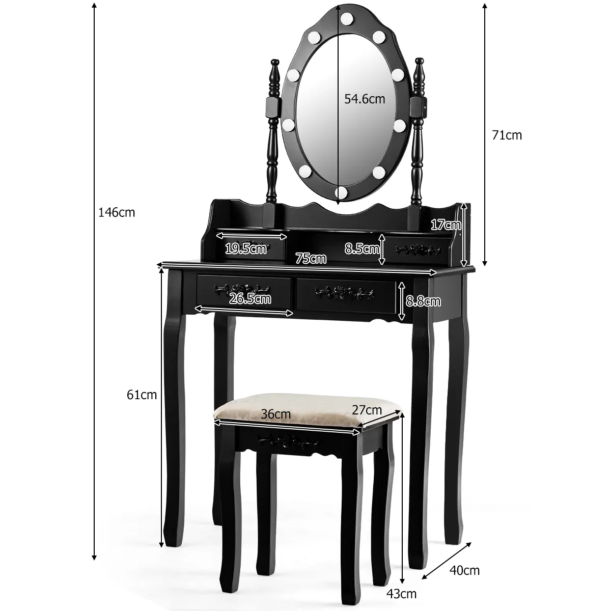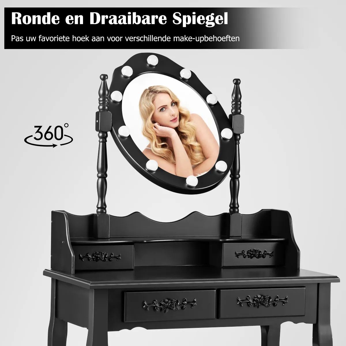 Verfris uzelf om een dag te beginnen met zo’n high-definition spiegel. Onze kaptafel is gemaakt van eersteklas grenenhouten poten met antislip voetzolen, waardoor de veiligheid in hoge mate wordt gegarandeerd. Met zijn afneembare bovenkant kun je ook even je werk doen. De 10 omringende bollen zijn een decoratieve hit in uw kamer!