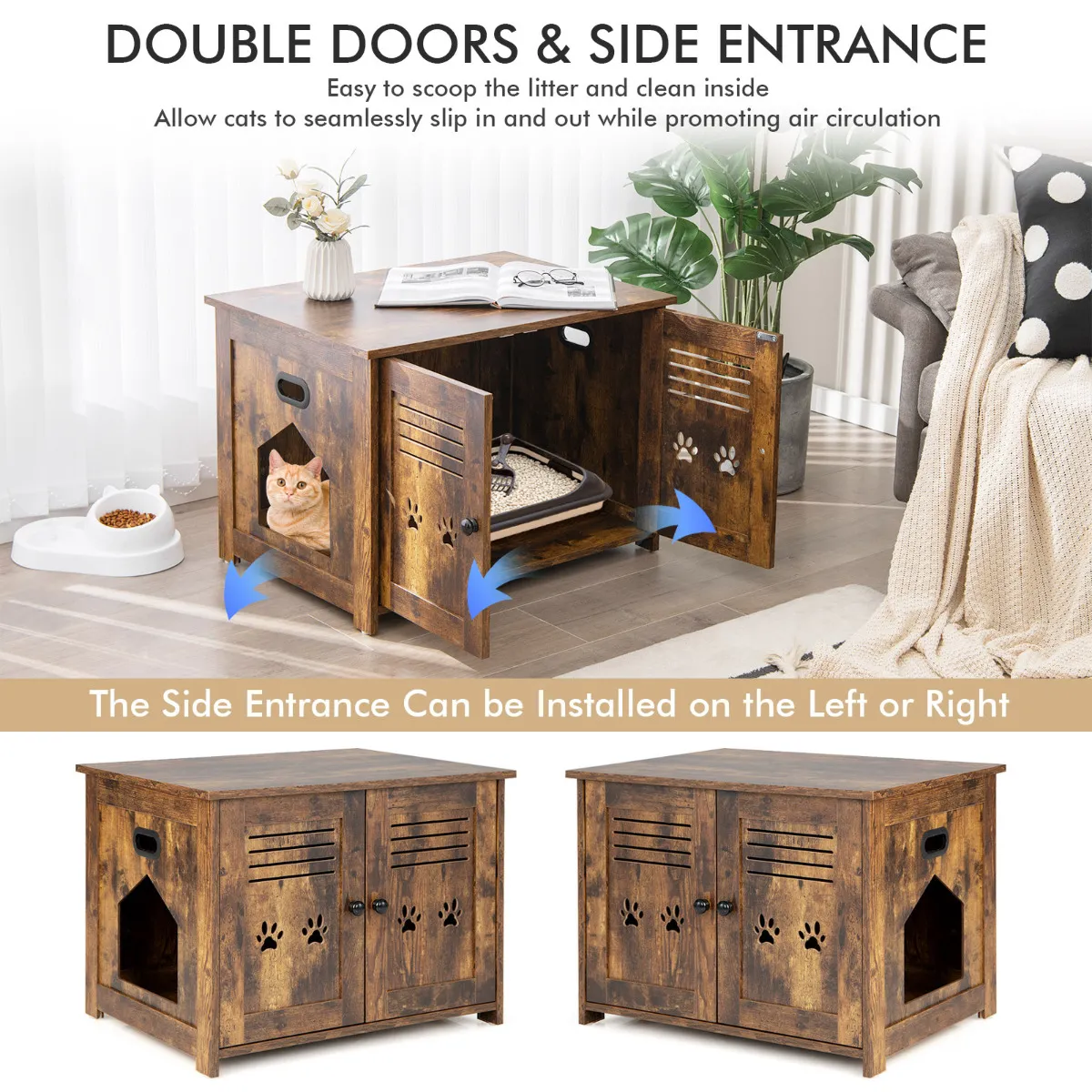 Bovendien kan het ook dienen als salontafel, bijzettafel, of nachtkastje, die perfect in elke hoek van je huis past. Het ruime tafelblad is geschikt voor het plaatsen van tijdschriften, potplanten, decoraties en kattenaccessoires en houdt je woonkamer opgeruimd en schoon. Bovendien is het uitgerust met dubbele lamellendeuren en een zijingang om de luchtcirculatie te bevorderen. Bovendien maakt het gebruik van verdikte planken die een uitstekende duurzaamheid en een groot draagvermogen garanderen. Katten hebben een privéen veilige plaats nodig, en deze kattenbak is een perfect cadeau voor haar.