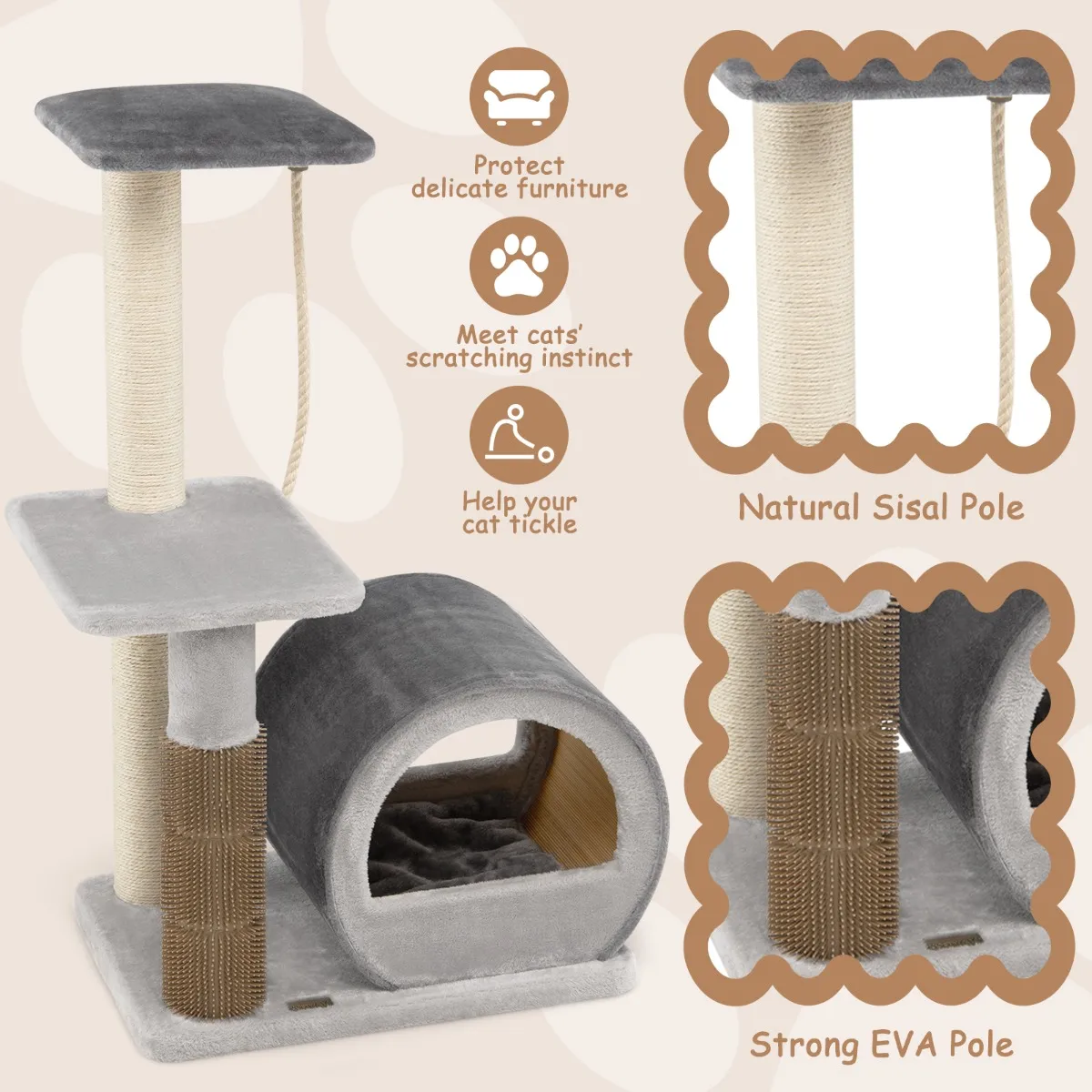 Kattengezondheids- en massagecentrum: Om het instinct van de kat de vrije loop te laten en zijn aandacht van uw meubels af te leiden, hebben we een hoge, slijtvaste krabpaal ontworpen waar katten hun klauwen aan kunnen scherpen. En er is een ingebouwde borstel zodat katten kunnen masseren of schrobben voor een gezonde, verfijnde vacht.