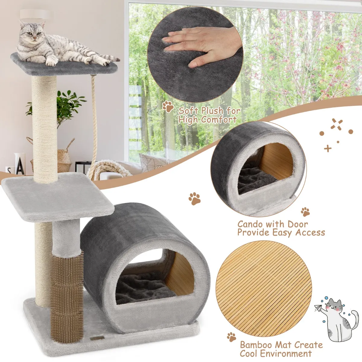 Comfortabel rusthuis: Onze kattentoren bevat een grote, verbeterde condo, opgevuld met een ademende, koele bamboemat, waardoor katten een rustigere nachtrust hebben. Het heeft ook 2 grote ingangen voor gemakkelijke toegang of verstoppen, terwijl het zorgt voor goede ventilatie.