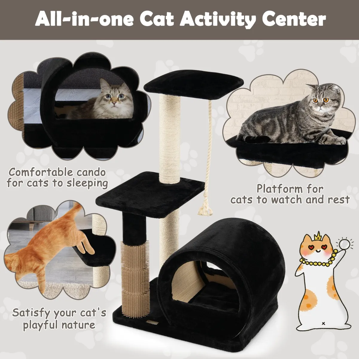 Onze krabpaal heeft een pluche zitstok, een springplatform, een hangende bal en een condo met een bamboemat zodat ze comfortabel kunnen rusten, springen en spelen. Hij heeft duurzame sisalpalen en een EVA borstel om hun nieuwsgierigheid te bevredigen, zodat ze zichzelf kunnen verzorgen en hun klauwen kunnen scherpen, om ze af te leiden van uw meubels. Hij heeft een stabiele structuur met een vierkante basis van gefabriceerd hout om een hoge draagkracht te garanderen, en het moderne, beknopte ontwerp maakt hem tot een veelzijdige binnenhuisarchitect.