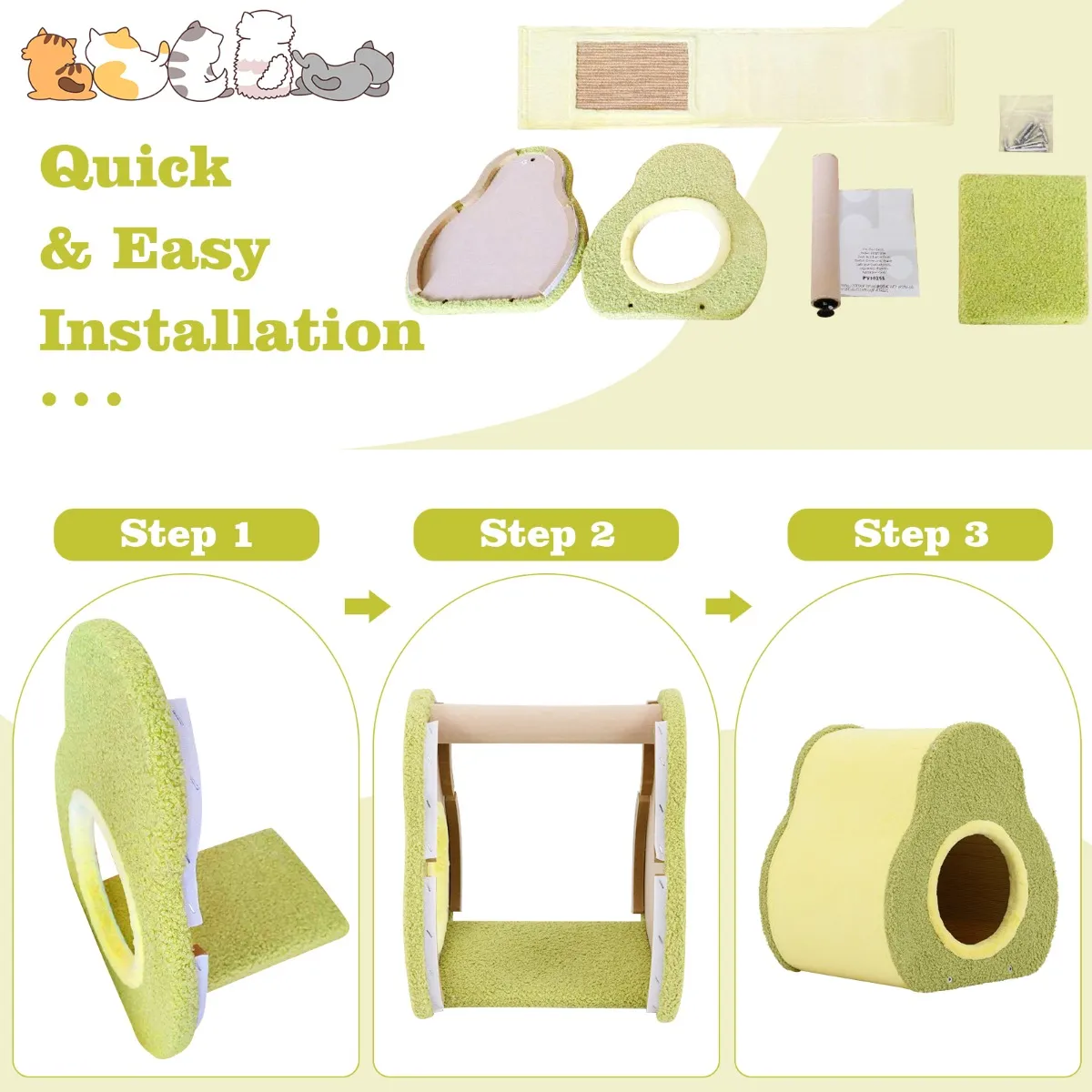 【Snelle en eenvoudige installatie】: Dit schattige kattenhuis wordt geleverd met eenvoudige structuren en is eenvoudig in elkaar te zetten, zodat u uw kattenhuis in een mum van tijd klaar hebt. Het bespaart je echt veel tijd en energie.