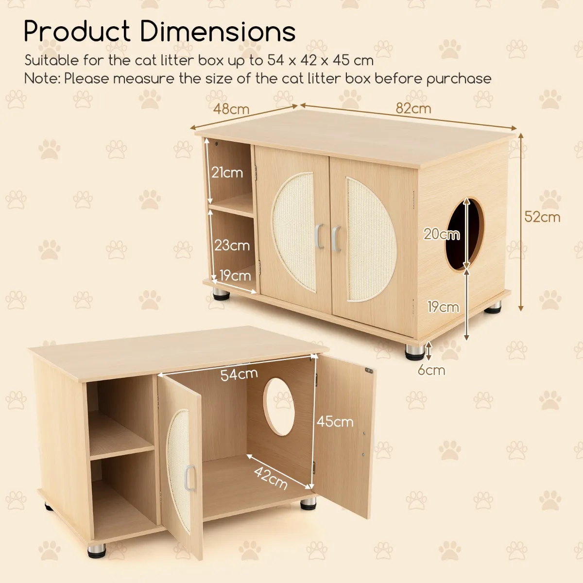 Kattenkast Voor Kattentoilet Kattenbakkast Met 2 Deuren En Krabplank 2 Sisal-Krabmatten Ingang Kattenhuis Voor 2 Katten -Naturel