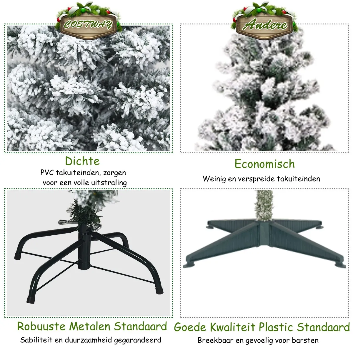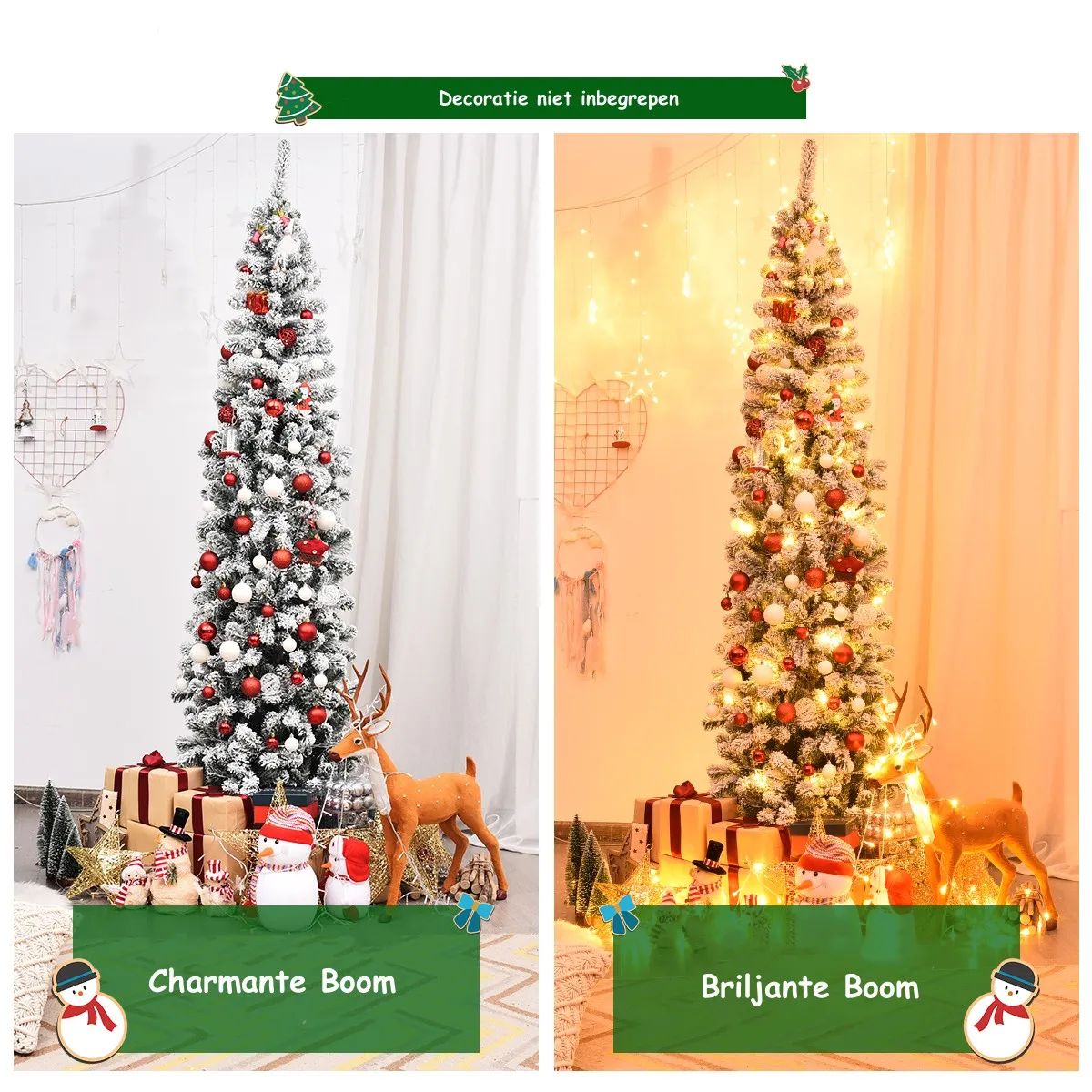 Potlood kerstboom met sneeuw: Met 641 takken is deze kerstboom met sneeuw vol en elegant. Het voegt een winterse sfeer toe aan elke omgeving. Met zijn slanke potloodontwerp is het ruimtebesparend en perfect voor plaatsing in hoeken of kamers met beperkte ruimte.