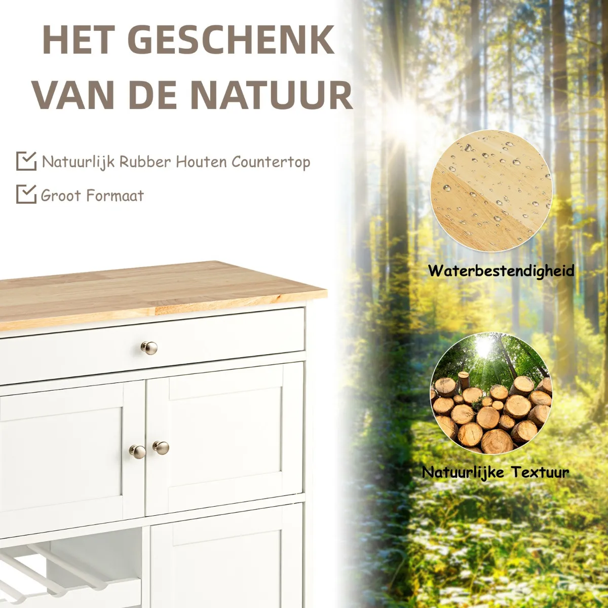 【Stevige houtconstructie】Vervaardigd met premium MDF materiaal en rubber hout, dit keukeneiland kar beschikt over grote stevigheid en duurzaamheid voor langdurig gebruik. De natuurlijke rubberen houten top is waterdicht en anti-kras, waardoor u geen zorgen te maken over het gebruik van betrouwbaarheid en ondersteunt tot 30kg.