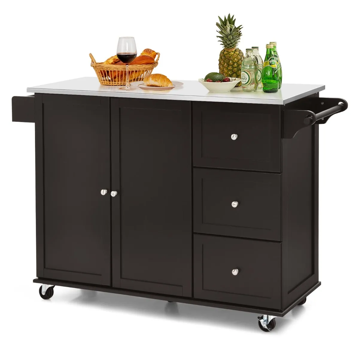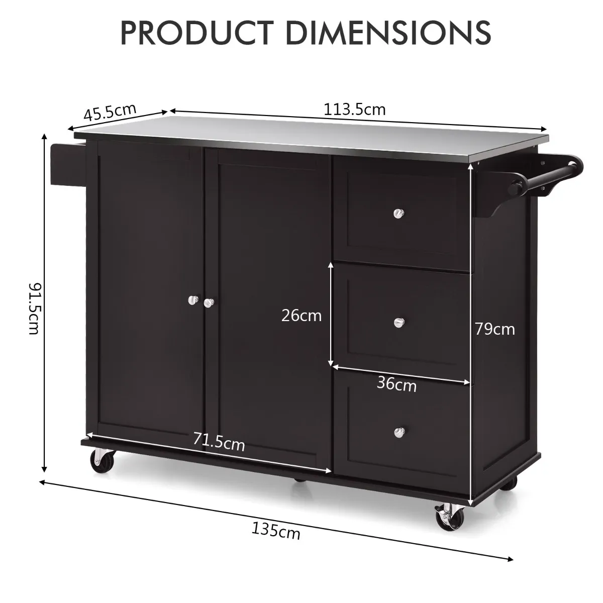 Perfecte opbergoplossing: De keukentrolley beschikt over 3 laden, waarmee je eet- en keukengerei probleemloos kunt ordenen. Naast de laden biedt de tweedeurs kast voldoende opbergruimte voor een groot aantal keukengerei. Het is vermeldenswaard dat het werkblad van roestvrij staal veel comfort biedt bij het bereiden van gerechten en tegelijkertijd extra opbergruimte biedt.