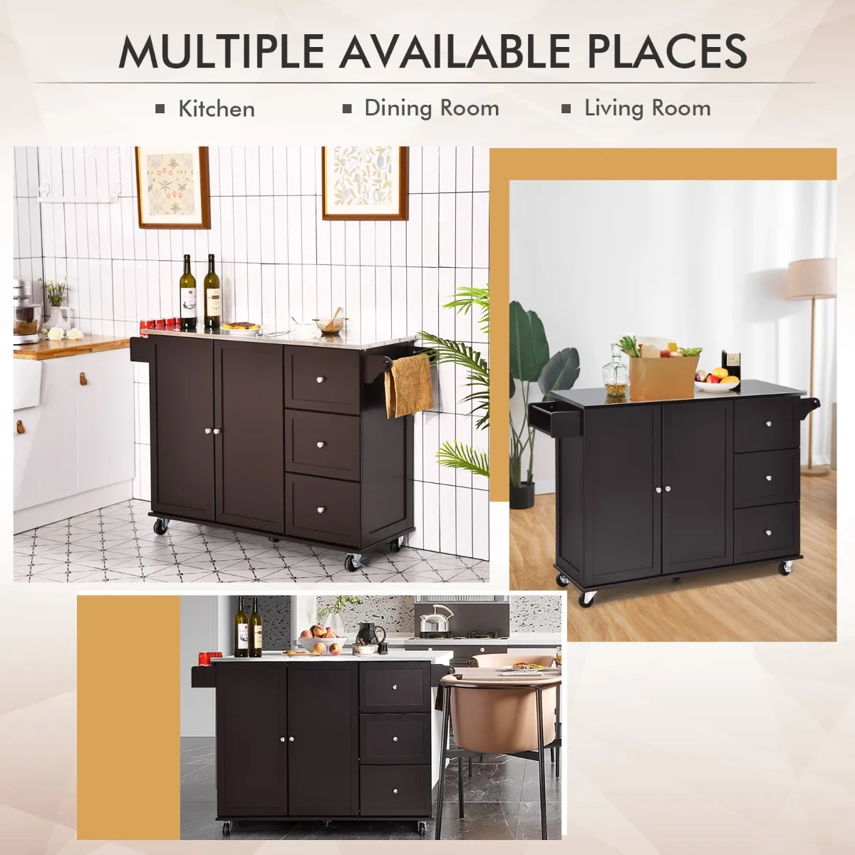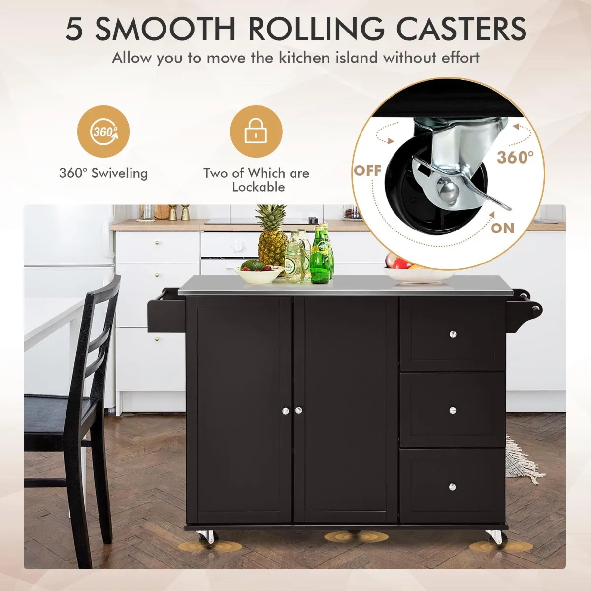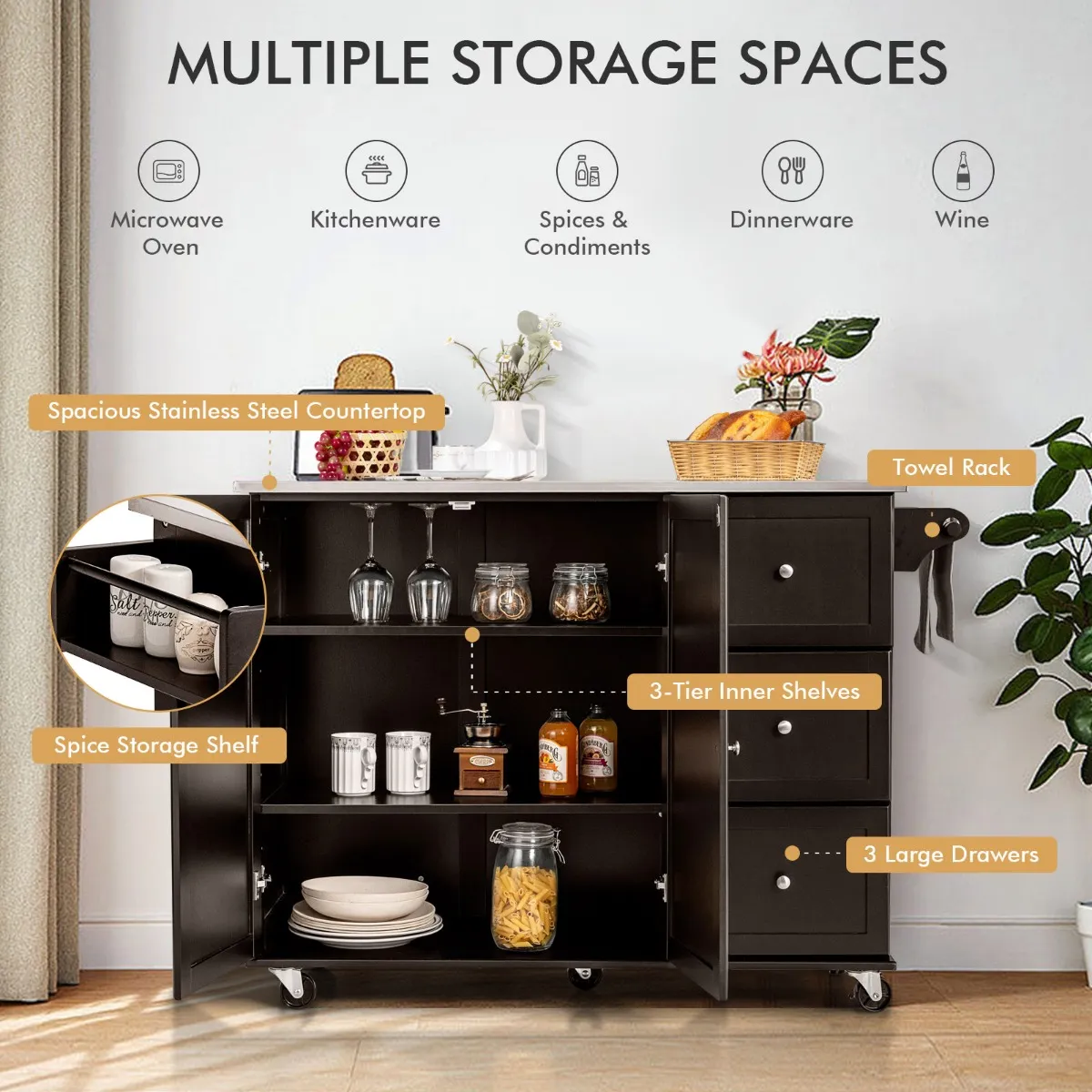 Het werkblad van roestvrij staal wordt gekenmerkt door grote robuustheid en eenvoudige reiniging. 3 lades bieden je ideale opbergruimte voor veel keukengerei. Bovendien houden een kruidenrek en een handdoekhouder de kruidenflesjes en keukenpapier binnen handbereik. De gesloten kast heeft drievoudig verstelbare planken voor keukengerei van verschillende afmetingen. Bovendien maken 5 soepel lopende wielen (waarvan 2 vergrendelbaar) het gemakkelijker om je in je keuken of eetkamer te verplaatsen. Deze multifunctionele trolley is niet alleen een keukenopbergwagen, maar kan ook worden gebruikt als serveerwagen of voedseltrolley en is een ideale opberger voor verschillende plaatsen.