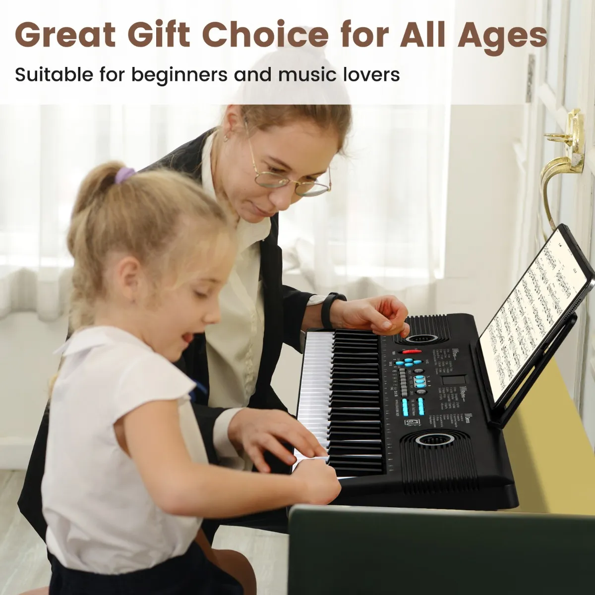 [Ideaal voor beginners]: Met 61 toetsen is ons muziekinstrument perfect afgestemd op beginners van alle leeftijden. De gebruiksvriendelijke bedieningselementen en de meegeleverde Keynote-stickers helpen nieuwe muzikanten om het keyboard te leren spelen.