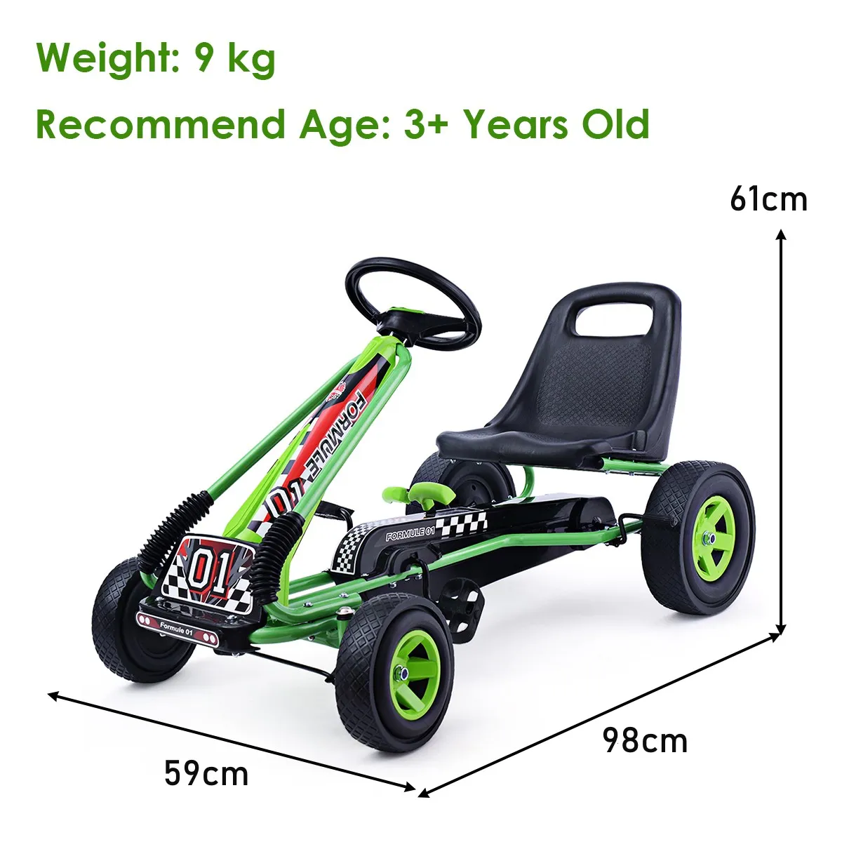 Het is een pedaal skelter voor jongens & meisjes van 3 tot 8 jaar oud, geschikt voor zowel binnen als buiten rijden. Het heeft een automatisch balanceringssysteem voor een betere balans. Vier grote rubberen banden met antislip-texturen voegen meer stabiliteit en balans toe aan de kart, de veiligheid van uw kinderen is goed verzekerd. Door de goede slijtvastheid is het sterk genoeg om op elk hard oppervlak of zelfs op gras te worden gebruikt, wat voor een spannendere rijervaring voor uw kinderen zorgt. Met deze skelter worden uw kinderen een sportliefhebber en helpen ze hen een gezondere levensstijl te leiden. Ze zullen een interessantere jeugd hebben. Aarzel niet om er een te kopen voor je kinderen!