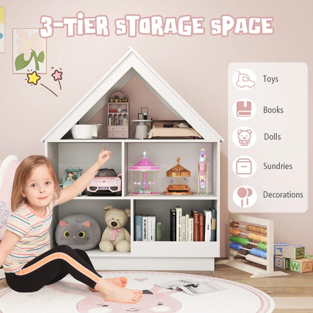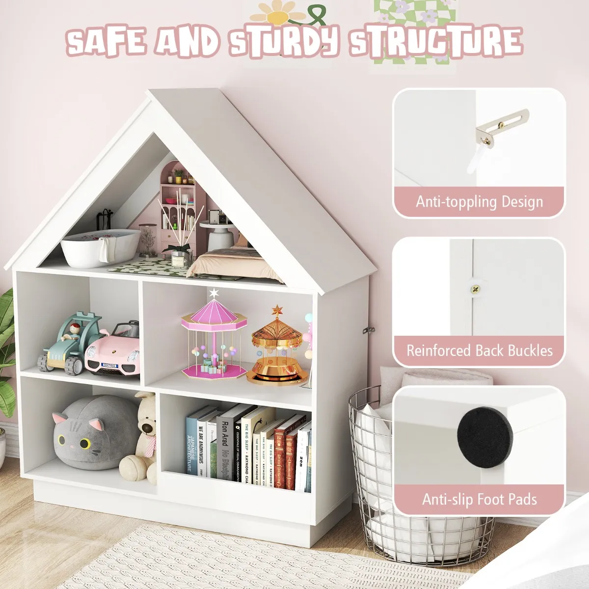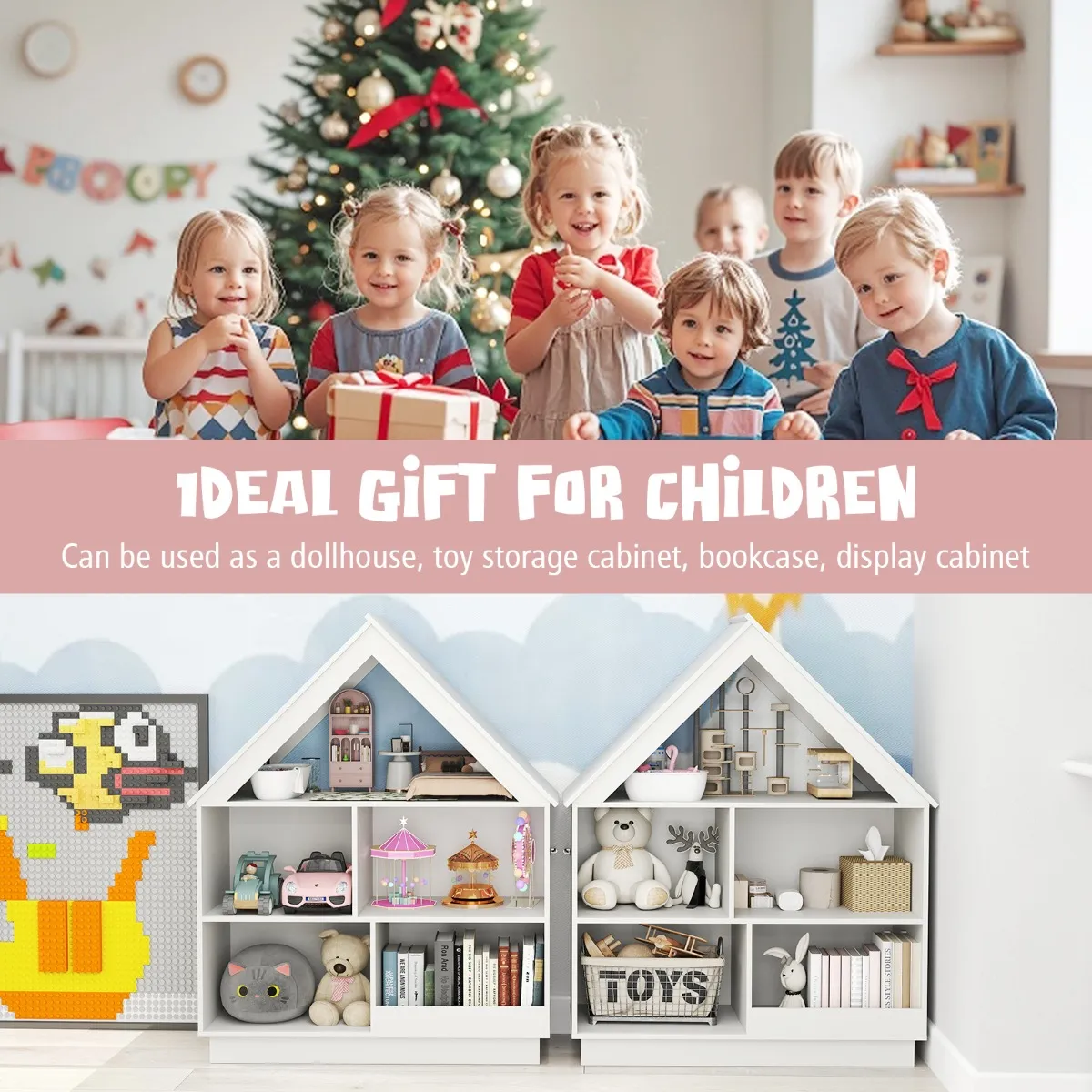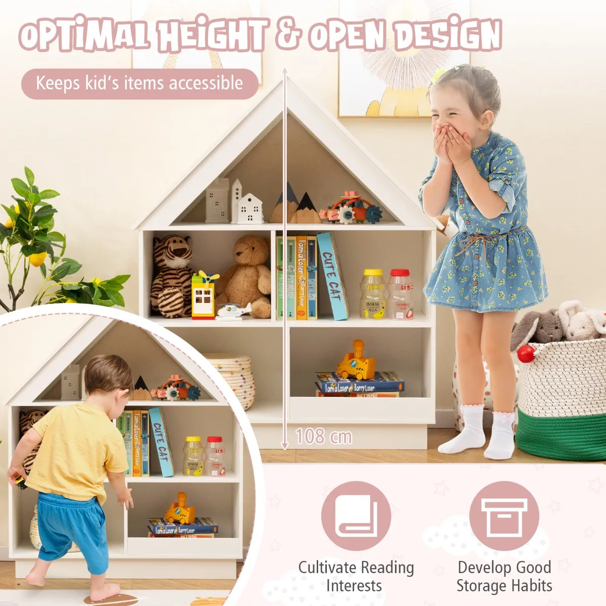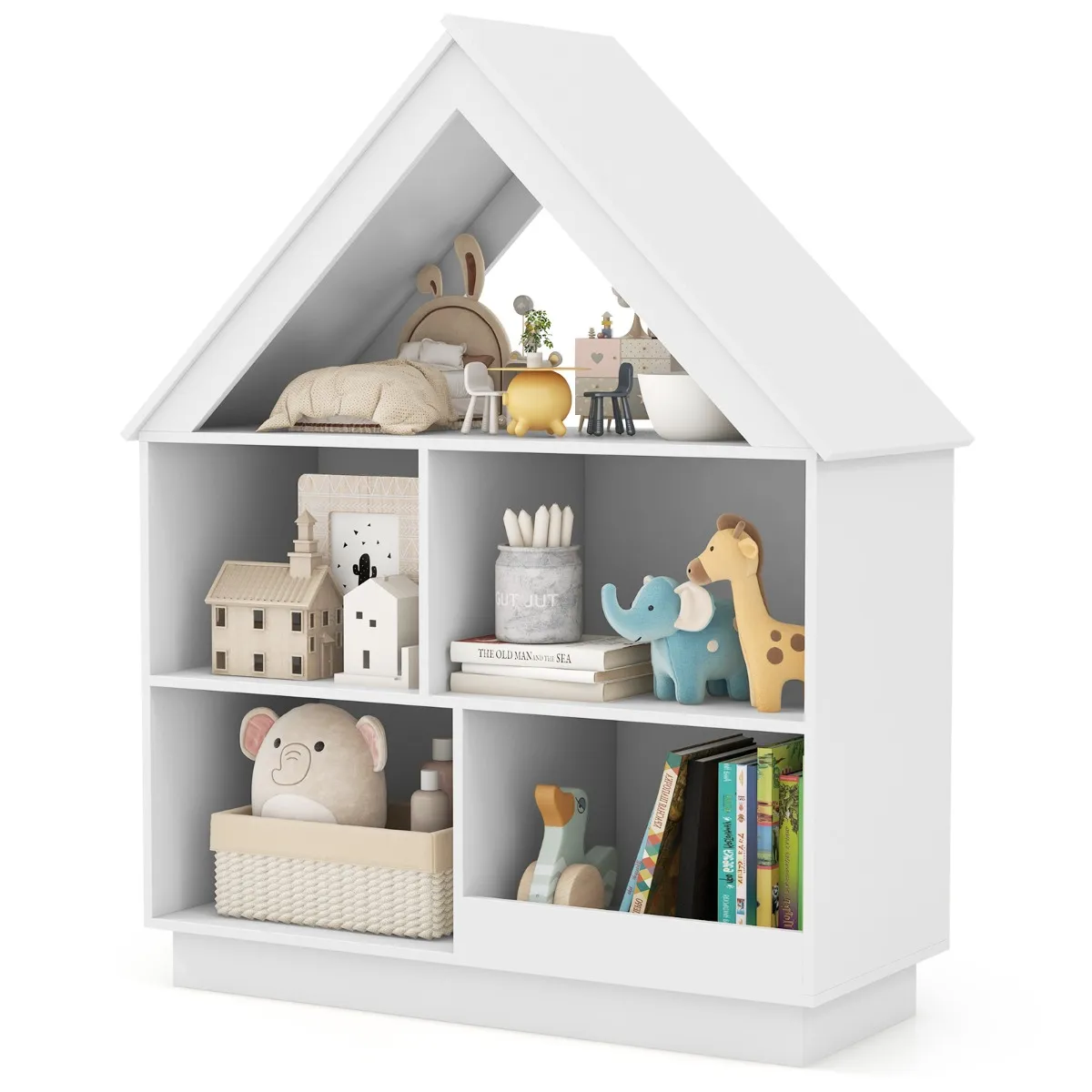 Kinderboekenkast In De Vorm Van Een Huis Houten Speelgoedopbergmeubel Met 5 Vakken Open Displayplank Met 3 Niveaus-Wit