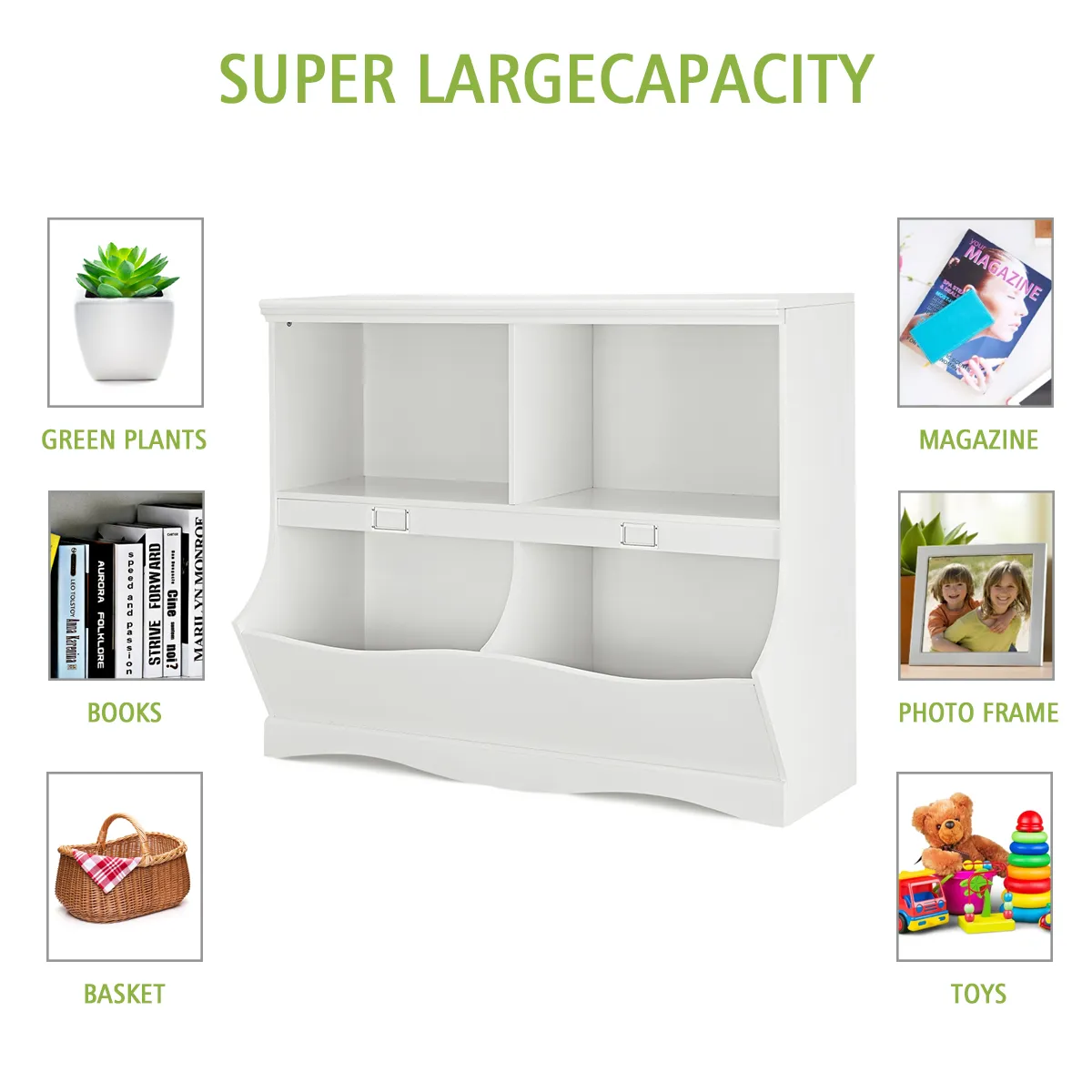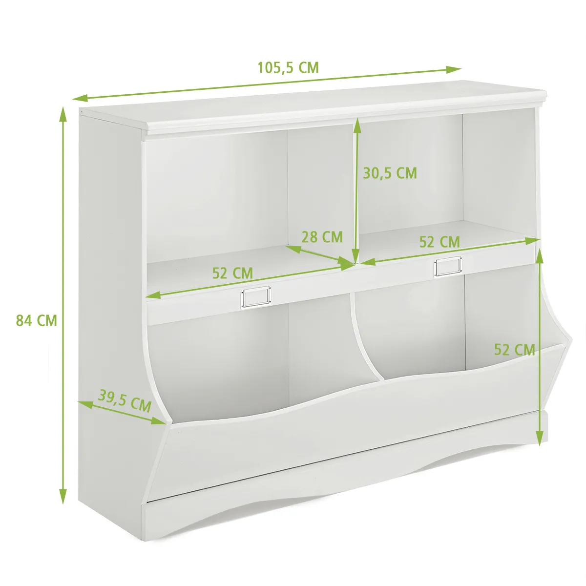 In onze opbergbak met meerdere bakken past al het favoriete speelgoed of de boeken van je kinderen. Het is een geweldig hulpmiddel om ze te leren hoe ze hun eigen spullen moeten opbergen en sorteren dankzij de ruime opbergruimte met zijn ruime bovenblad, 2 vakken en 2 bakken. Gemaakt van duurzaam, milieuvriendelijk MDF-paneel is deze boekenkast met meerdere bakken gezond en duurzaam. Met zijn moderne, elegante stijl is hij geschikt voor zowel volwassenen als kinderen en zal hij prachtig staan in een slaapkamer, woonkamer of op school.