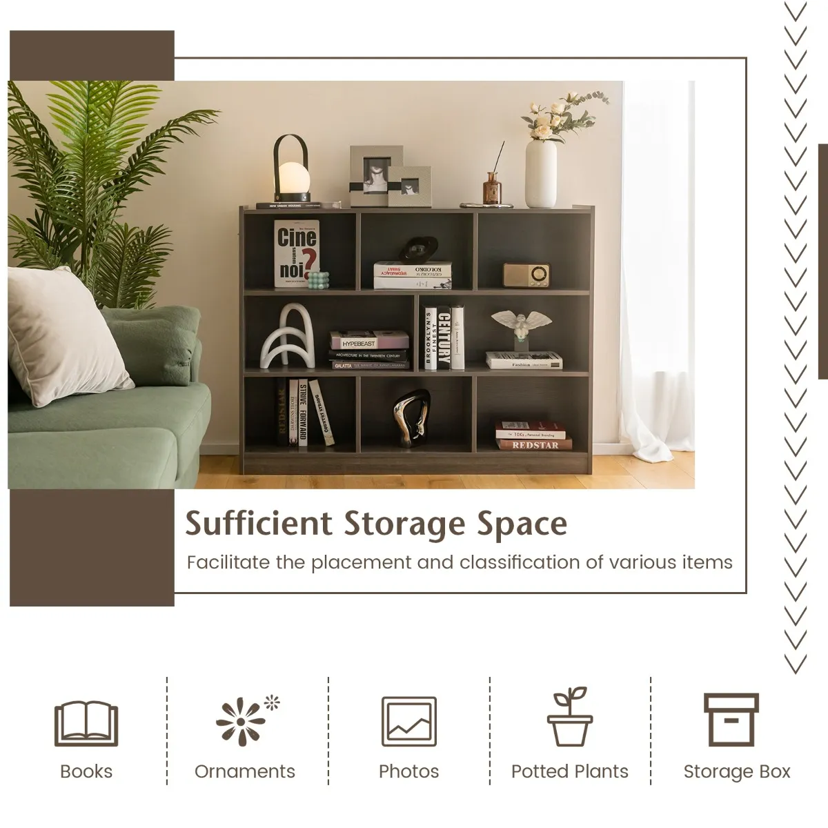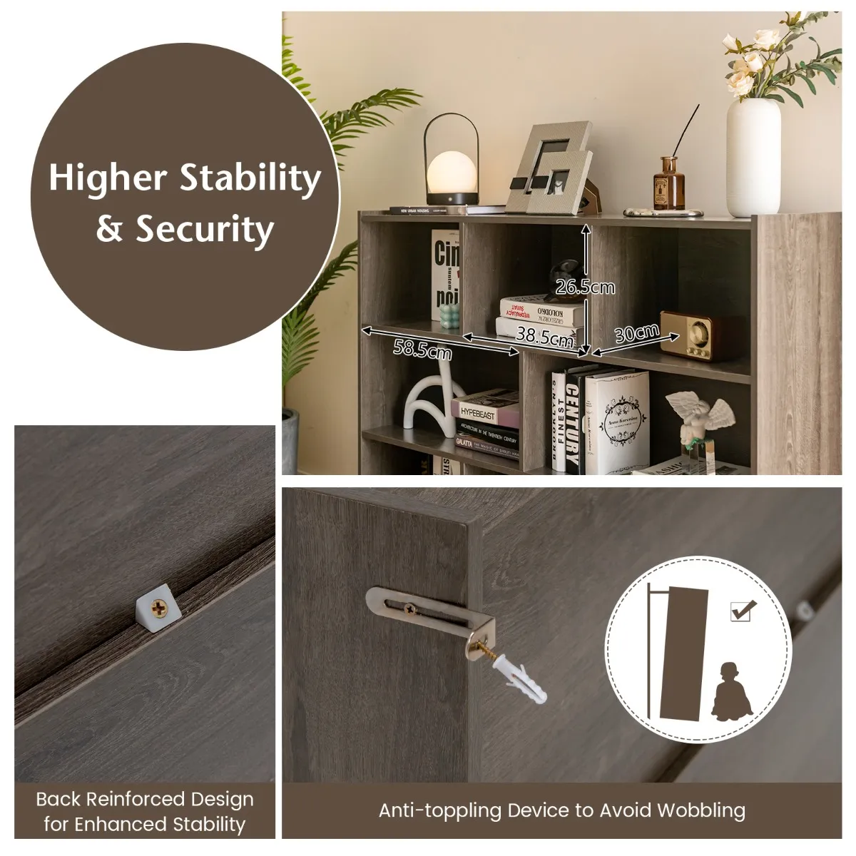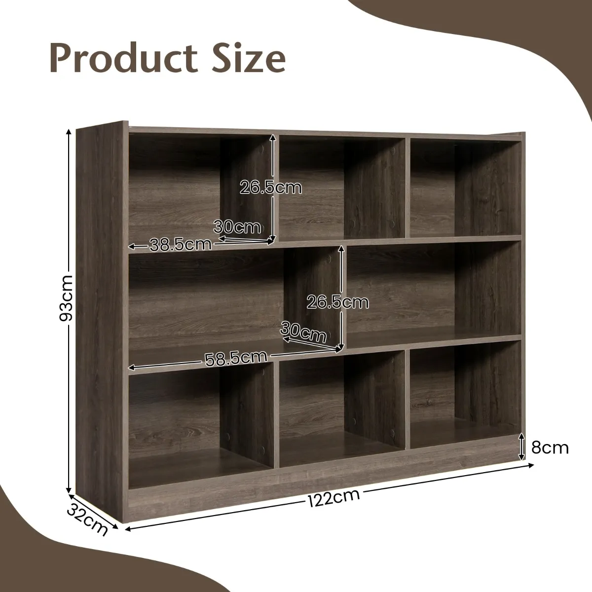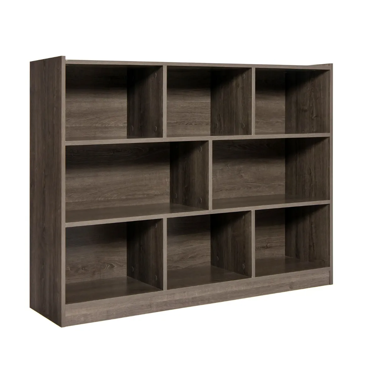 Onze boekenkast met 3 niveaus heeft 8 vakken voor het opbergen van alledaagse benodigdheden in verschillende secties, wat goed kan passen bij jouw opslagbehoeften. De brede bovenkant van de kast is een perfect platform voor het uitstallen van decoratieve voorwerpen. Hij is gemaakt van duurzaam gelamineerd hout en MDF, waardoor hij stevig en betrouwbaar is voor langdurig gebruik. Met zijn eenvoudige, moderne ontwerp voegt hij charme toe aan woonkamers, slaapkamers en kantoren. Het is een praktische opbergoplossing voor het organiseren van je spullen, of je hem nu gebruikt als boekenkast of als plank.