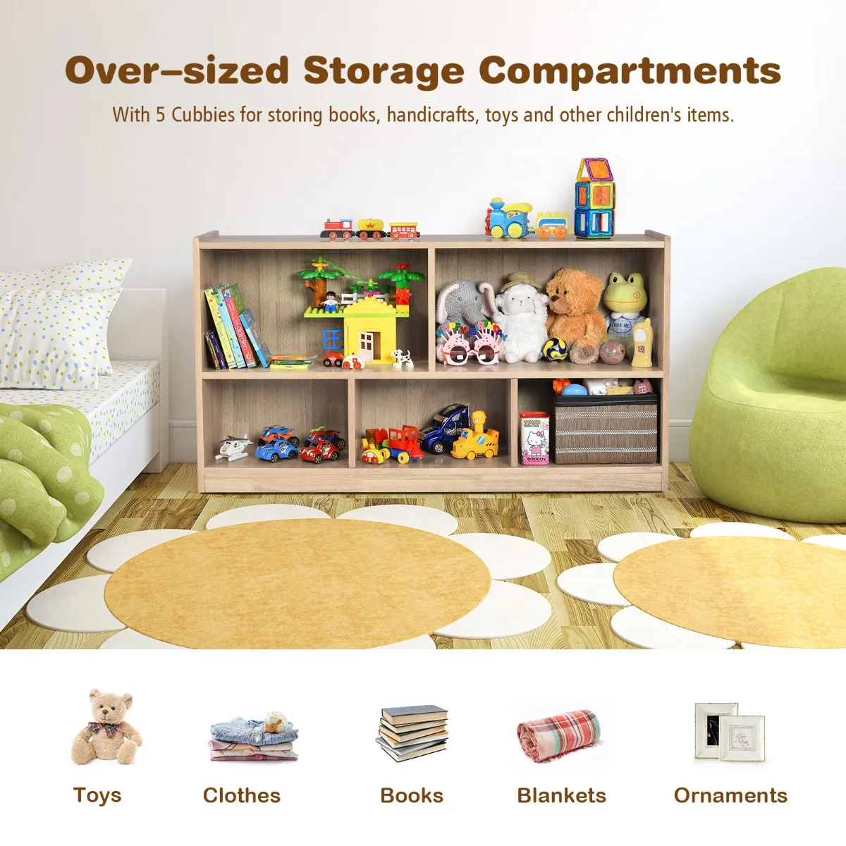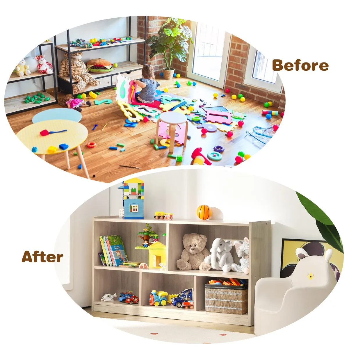 De 5-compartimenten opbergkast is gemaakt van eersteklas gefabriceerde platen, en het materiaal voldoet aan de TSCA-normen, wat veilig en duurzaam is. De opbergkast met versterkte achtergespen en antislip onderleggers is een stabiel multifunctioneel opbergsysteem dat stabiel in elke hoek van de kamer kan staan. Het heeft vijf 28,5 cm diepe compartimenten, die kunnen worden gebruikt om speelgoed, boeken, kunstbenodigdheden en spelbenodigdheden op een ordelijke en gesorteerde manier op te bergen. En de hoogte van elke kubus is speciaal ontworpen voor onze kleine gebruikers, zodat ze gemakkelijk op de plank kunnen komen en terugzetten, om zo een goede gewoonte van het organiseren van dingen te ontwikkelen.