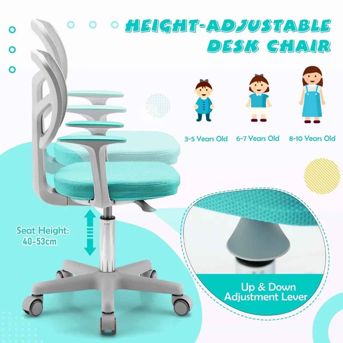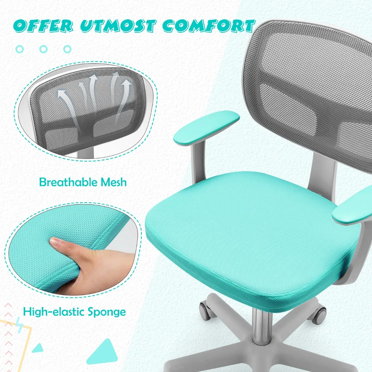 【Gewatteerde zitting van gaas】: Dankzij de dikke gewatteerde zitting met spons met hoge dichtheid creëert deze stoel een comfortabele studieomgeving voor je kinderen. Het netkussen zorgt voor luchtventilatie om hitte tijdens lange perioden van zitten te voorkomen.