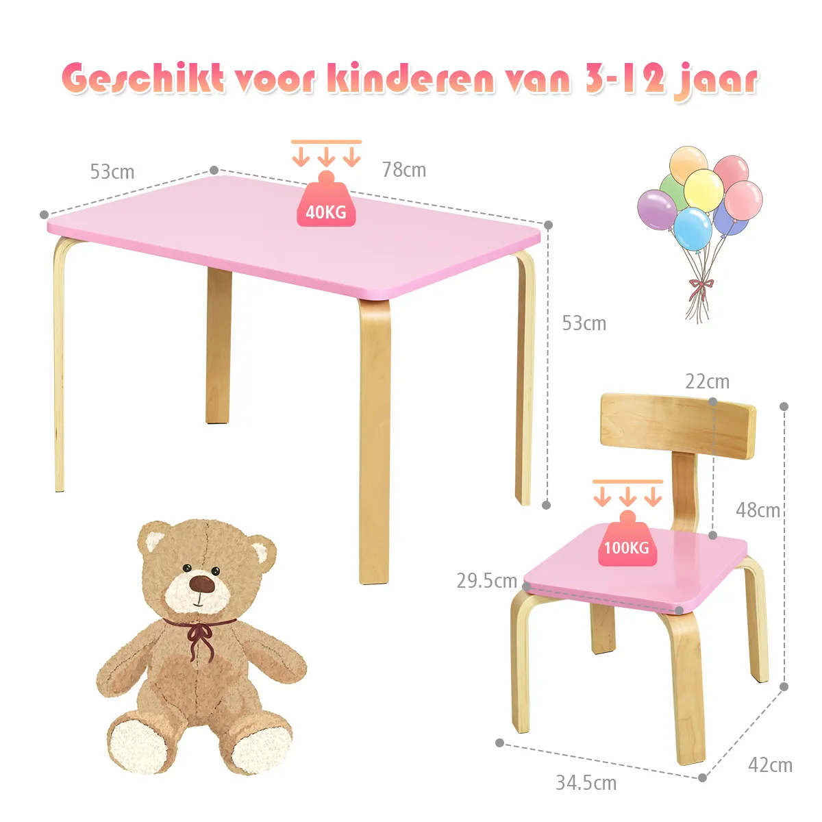 - Omvat: 1 x Tafel2 x Stoel1 x Gebruiksaanwijzing
