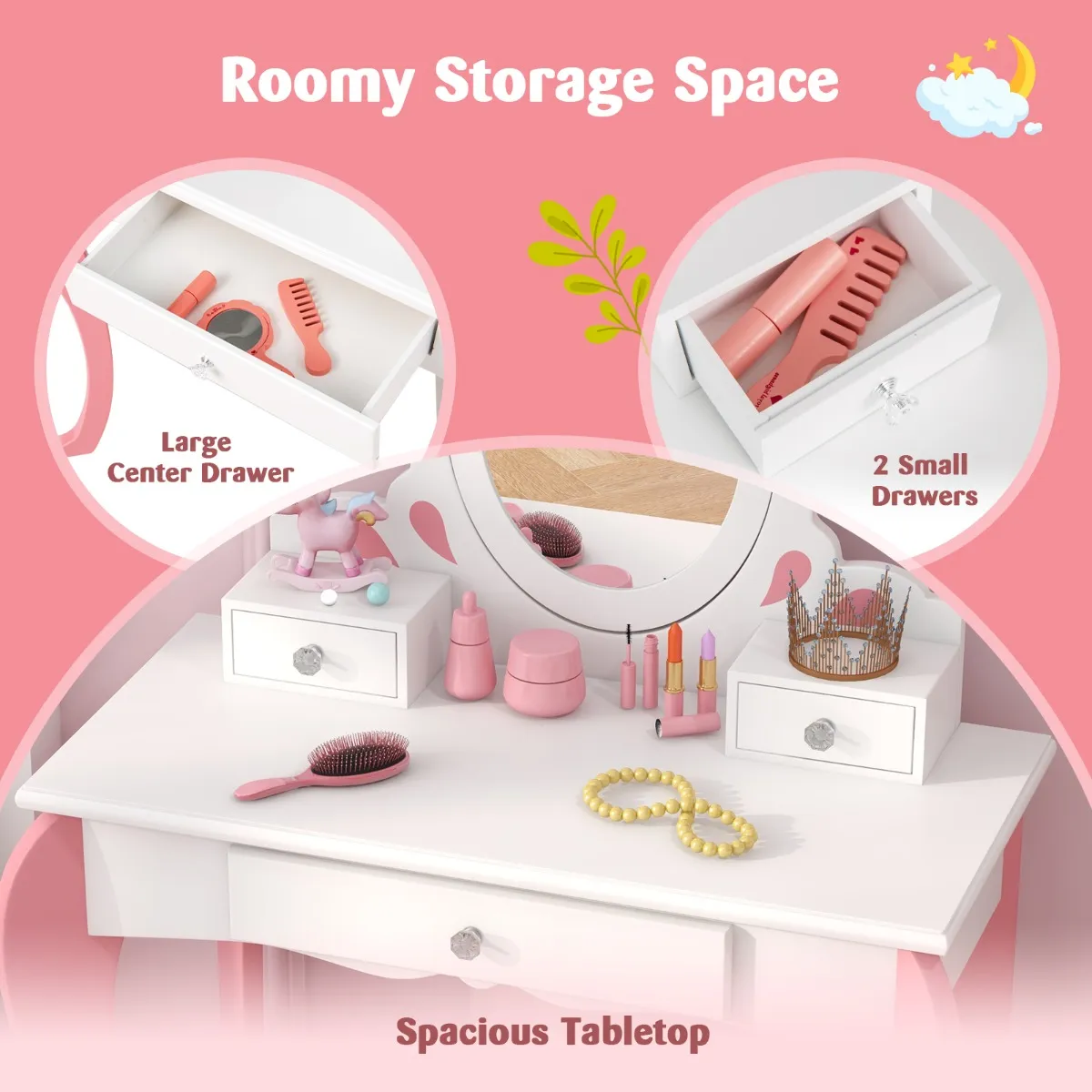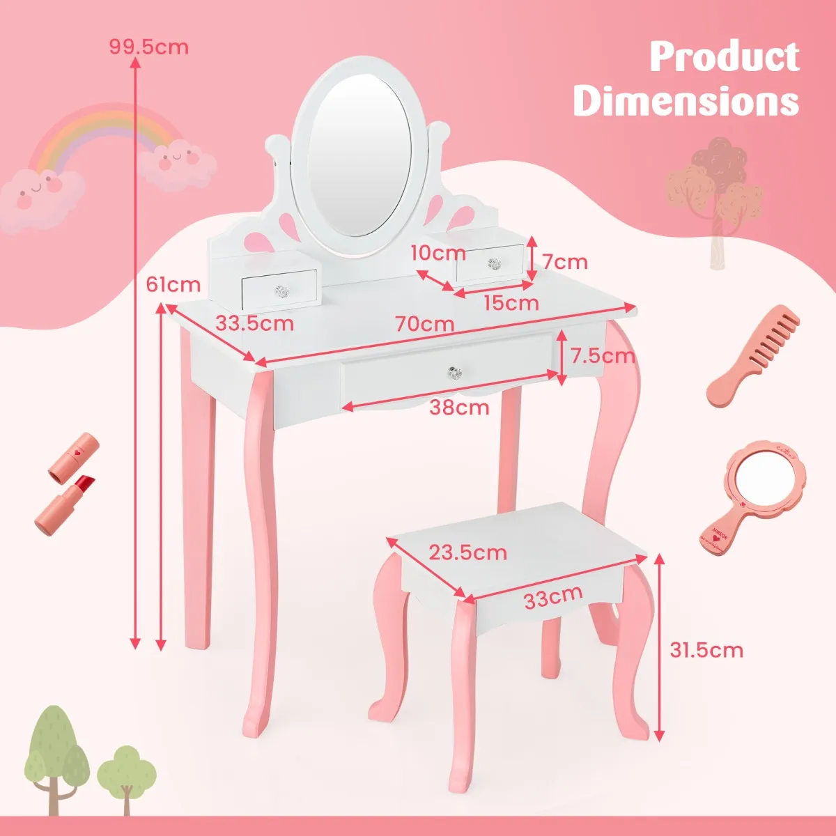 Kinder kaptafel set bestaat uit een kaptafel en een krukje