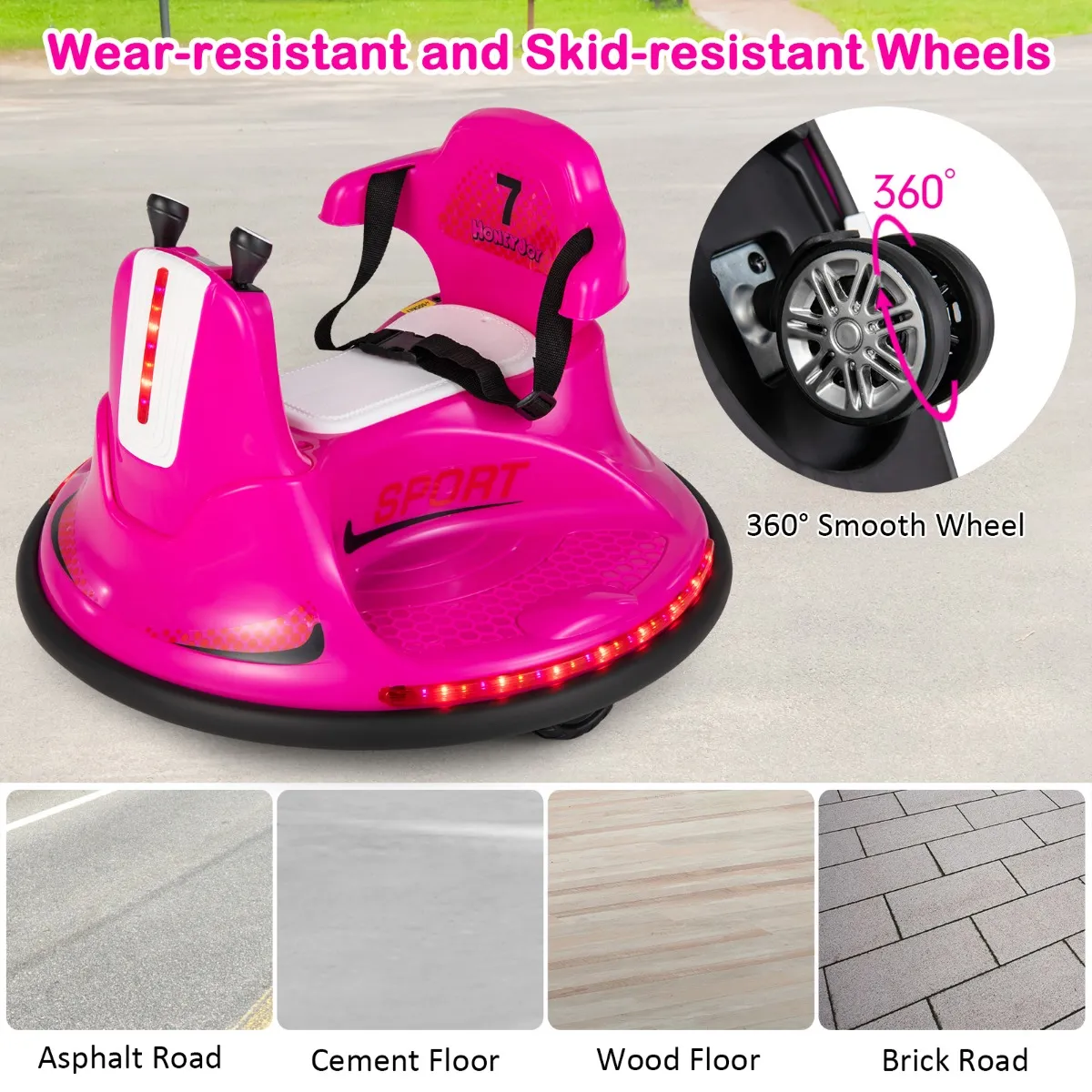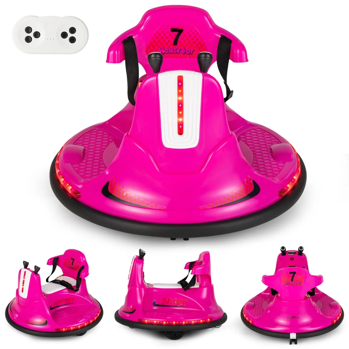 Met deze Botsauto, kunnen de kinderen vreugdevol rijden, ras, buil of draai. Het verlichte led randen, muziek, hoorn en verhaal bieden kinderen meer pret aan. De dubbele vreugdestickers helpen kinderen om het voertuig manueel te controleren, terwijl de afstandsbediening ouders toestaat om de auto te stoppen wanneer de kinderen het verkeerd in werking stellen. Met duurzame wielen, kan het zich flexibel bewegen of in alle richtingen sturen. Bovendien, verzekert onze stuk speelgoed auto niet alleen uren van pret, maar kenmerkt ook beschermend ontwerp. Het heeft een snelheid van 3-6 km/u en langzaam startsysteem, waardoor het veilig te gebruiken is. Bovendien beschermt de comfortabele rugleuning met verstelbare veiligheidsgordel kinderen tegen omrollen. De brede voetsteun met anti-slip ontwerp zorgt ervoor dat kinderen hun voeten kunnen plaatsen. Bovendien kan de zachte bumper een botsing bufferen.
