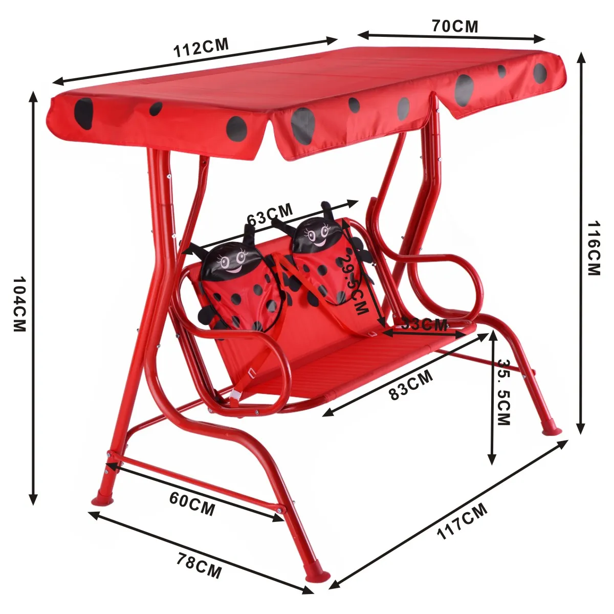 【Kever patroon stijl】De schommel heeft een kever thema dat zeker aantrekkelijk zal zijn voor uw baby, het zal eindeloze gelukkige ontspannende vrije tijd brengen voor u en uw kinderen en het is een perfect cadeau voor uw kinderen.