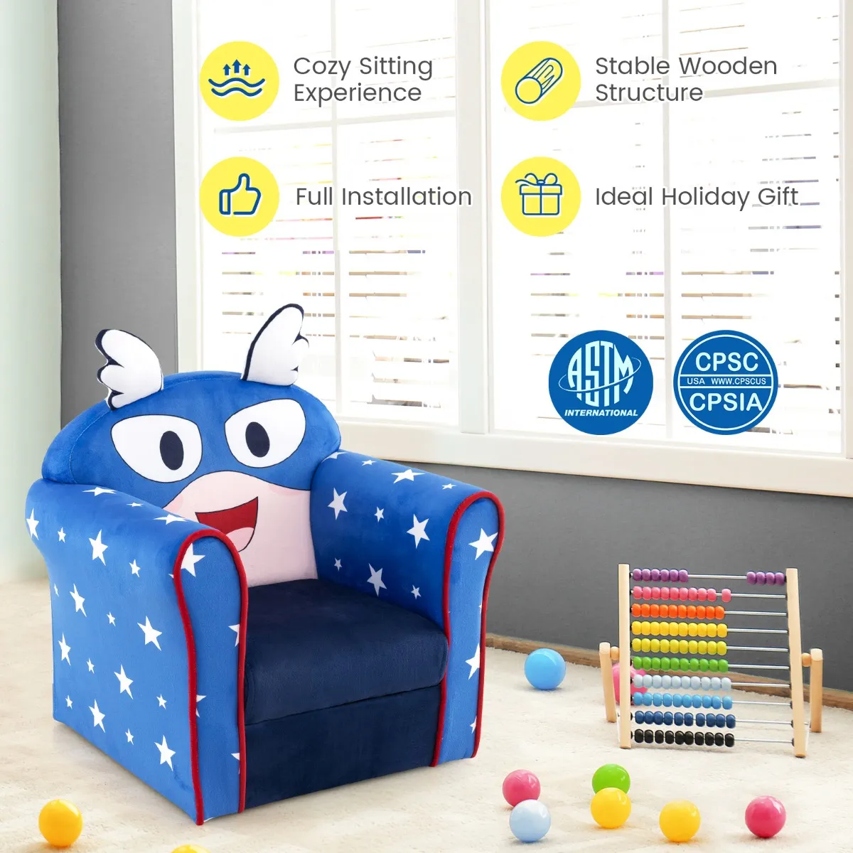 Het perfecte cadeau voor je kinderen: Deze veelzijdige kinderfauteuil biedt een comfortabele ruimte om te lezen, uit te rusten, te spelen, tv te kijken, snacks te eten. Bovendien maakt het mooie patroon het een geweldige decoratie voor de slaapkamer, speelkamer, kinderkamer en nog veel meer.