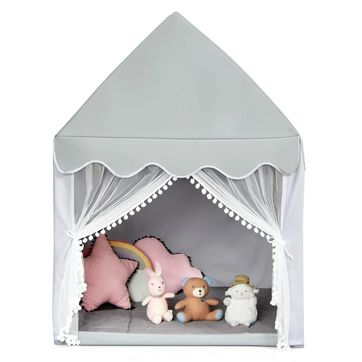 Ruime & Gezellige Kamer: Met 120cmx 105cm grote ruimte, kunnen zowel kinderen als ouders zich vrij bewegen in het speelhuis. Het is groot genoeg om vele hoofdkussens en het favoriete speelgoed van kinderen aan te passen. De dikke en zachte mat zorgt ook voor een meer comfortabele grond-zit ervaring.