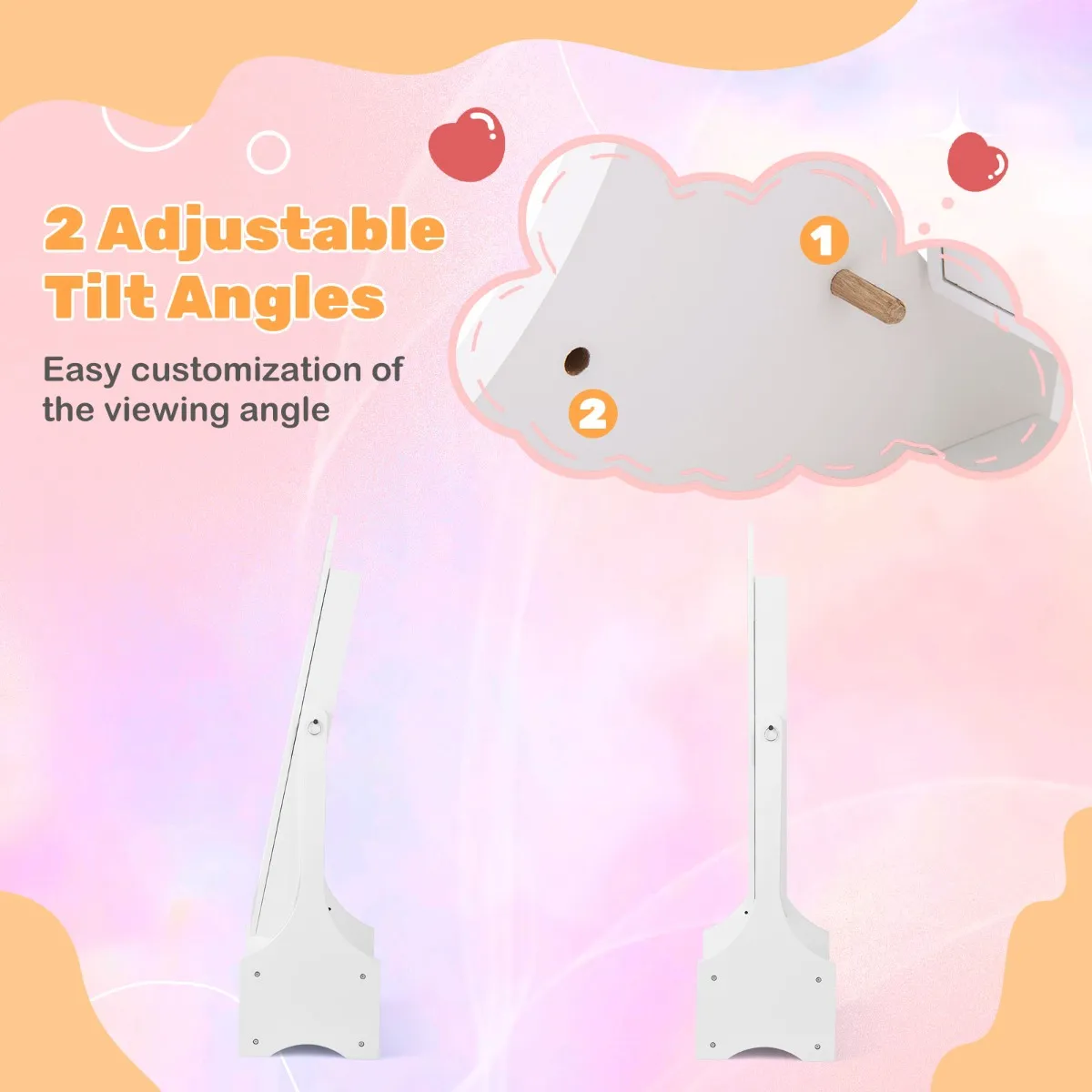 Verfraai de slaapkamer van je kind met onze juwelenkast, voorzien van een zilveren HD-spiegel met 2 verstelbare hoeken voor een hoofd-tot-teen zicht, om hun outfits te controleren. De sieradenopberger biedt voldoende opbergruimte met verschillende vakjes voor oorbellen, armbanden, ringen, etc… Deze ruimtebesparende 2-in-1 oplossing combineert een spiegel en sieradenopberger, waardoor hij perfect is voor compacte ruimtes. Ontworpen om stevig en veilig te zijn, voldoet het aan hoge normen, met de optie van muurbevestiging voor extra veiligheid.