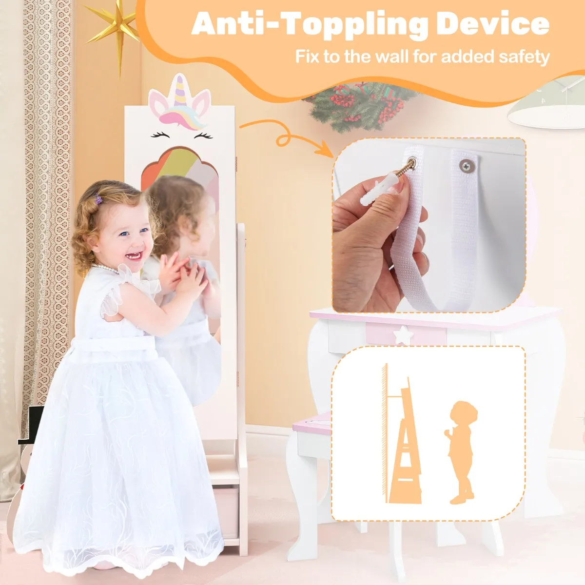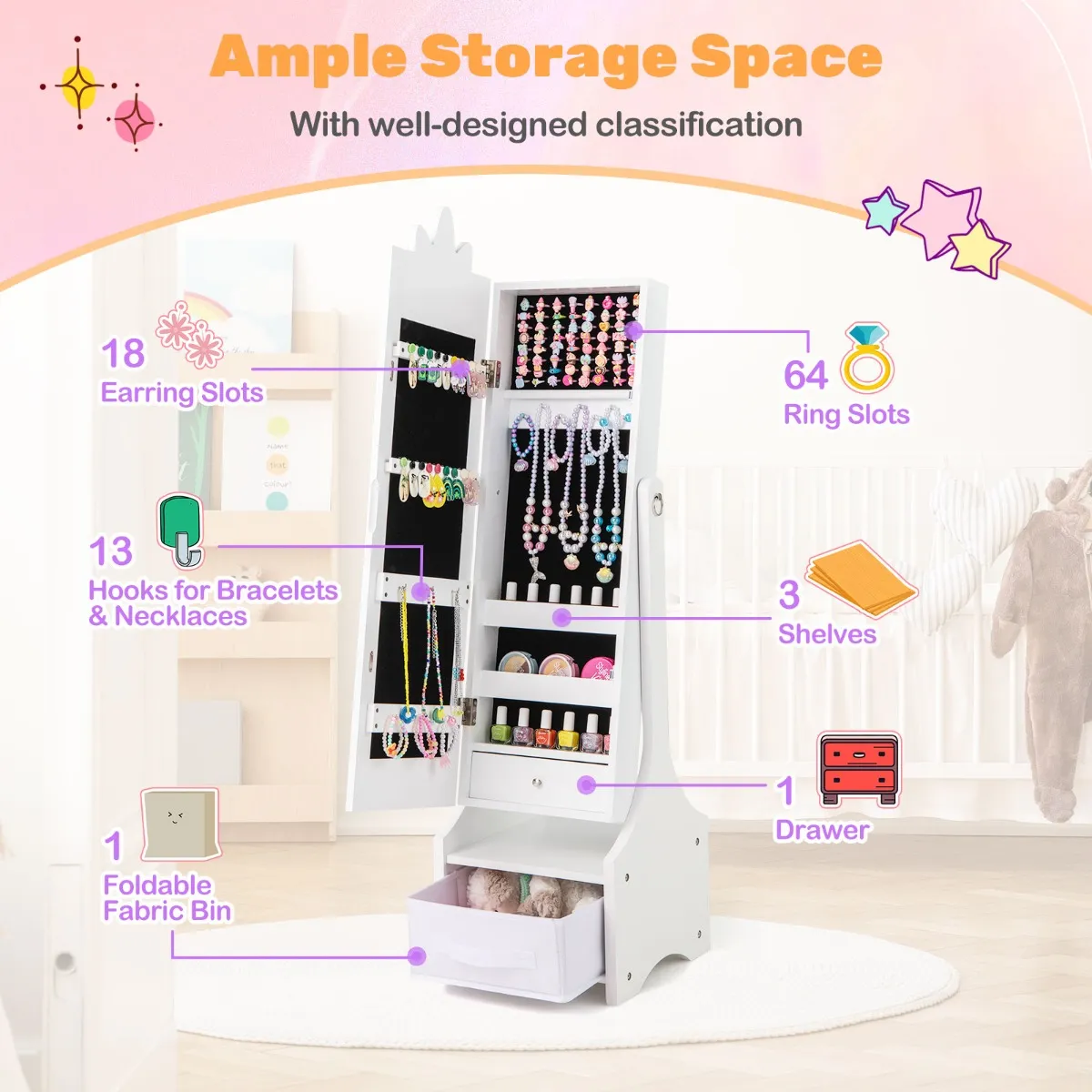 【Een ruimtebesparende opbergoplossing】: Met een multifunctioneel 2-in-1 ontwerp combineert deze juwelenkast voor kinderen een spiegel over de hele lengte en het opbergen van juwelen in één kast. Het is een geweldige keuze voor compacte ruimtes, zodat je efficiënt gebruik kunt maken van elke vierkante centimeter in de slaapkamer van je kind.