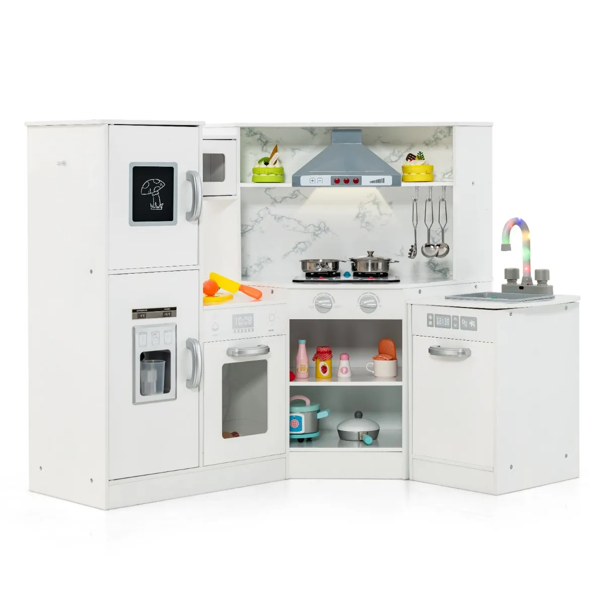 Je kleine kok zal verliefd worden op deze houten hoek-speelkeukenset !