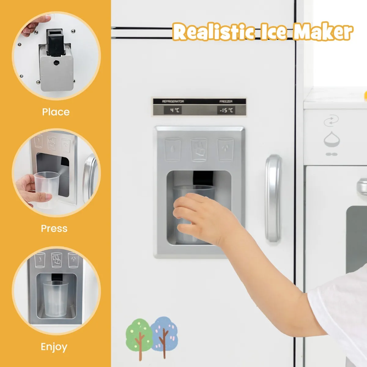 【Leuke speelruimte】 Kinderen kunnen ijsblokjes tikken om te genieten van de realistische ijsmachine. Ze kunnen op het bord tekenen of schrijven om hun verbeeldingskracht en creativiteit te stimuleren.