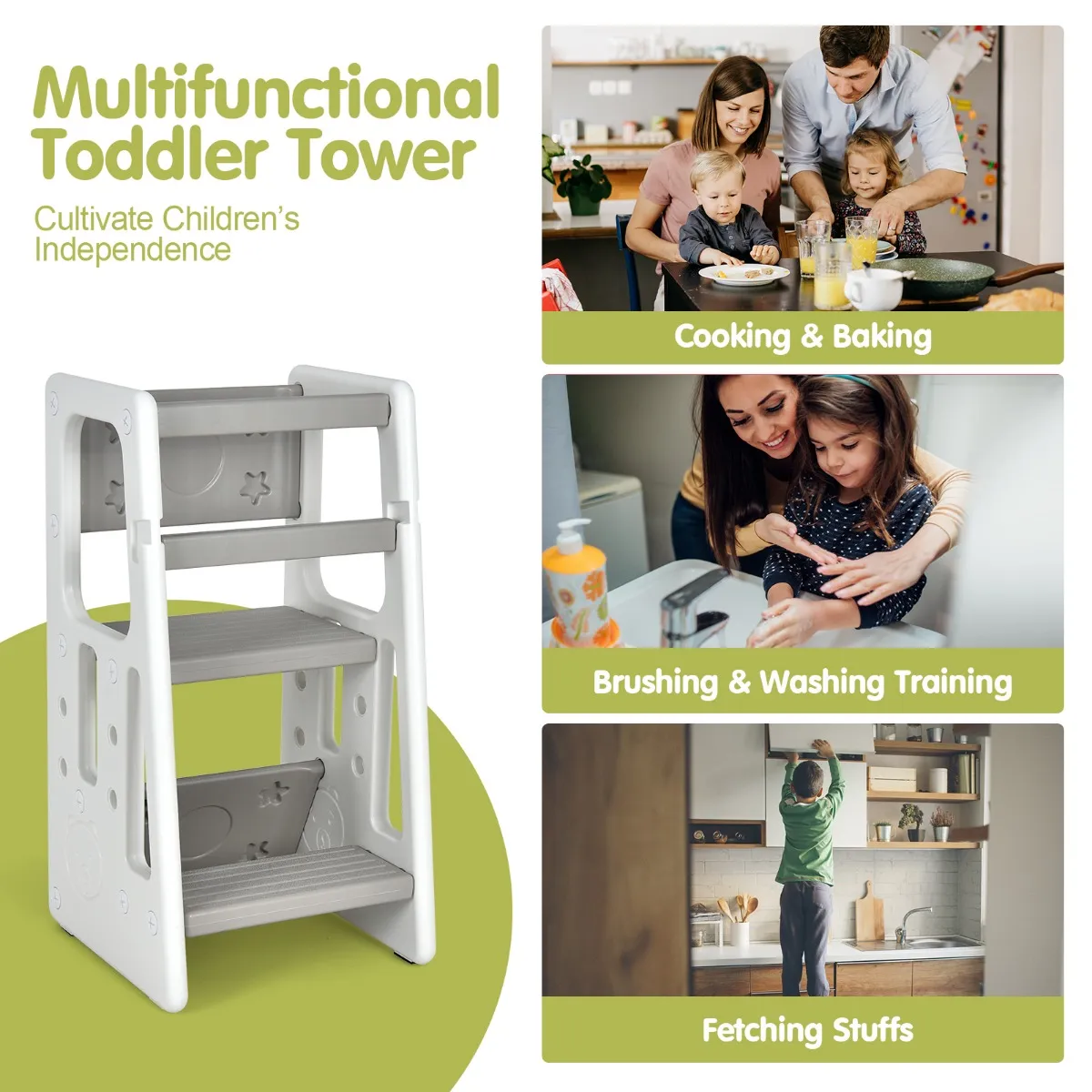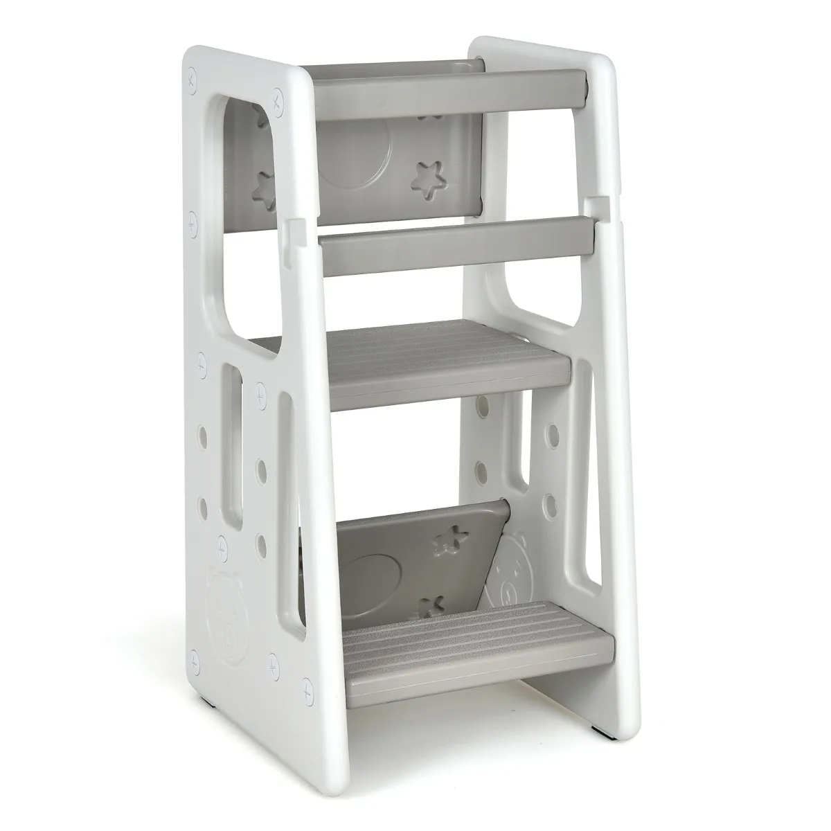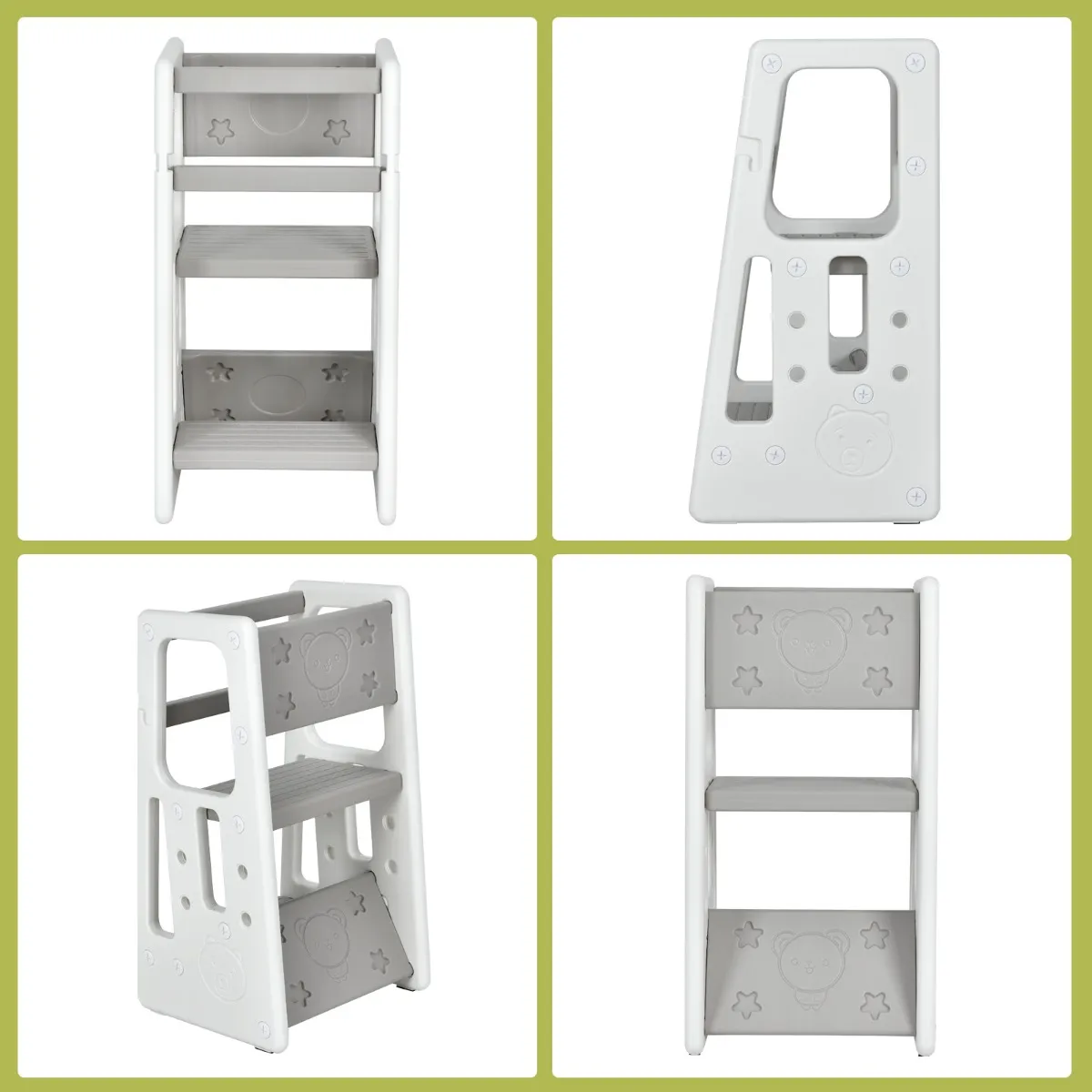 Multifunctioneel ontwerp: Wanneer uw kinderen groter worden, kunt u de dubbele veiligheidsrails verwijderen. Zo dient hij niet alleen als kindertoren, maar kan hij ook als kinderstoel worden gebruikt, zodat hij met uw peuters meegroeit en in hoge mate aan hun verschillende behoeften voldoet.