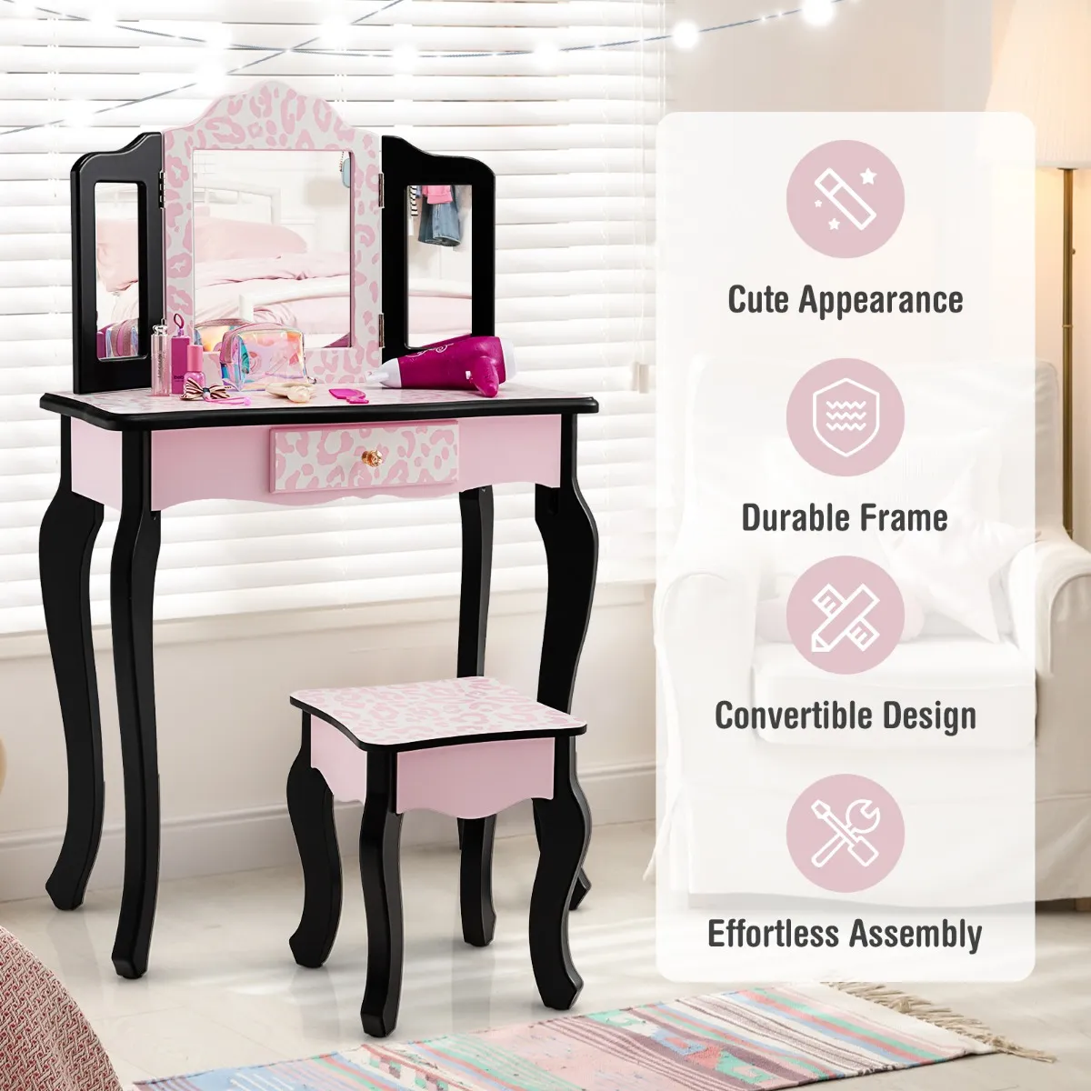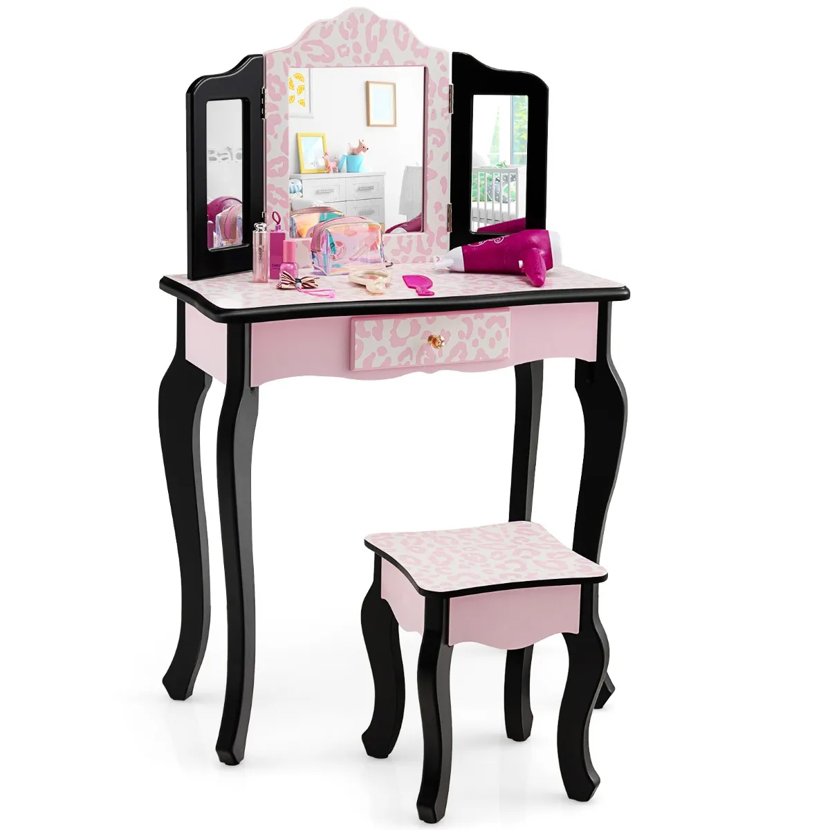 【Perfect cadeau】 Met een mooi zebrapatroon/luipaardpatroon/puntpatroon is deze make-uptafelset een ideaal cadeau voor kinderen. Praktische lade vergemakkelijkt het opbergen van een groot aantal voorwerpen