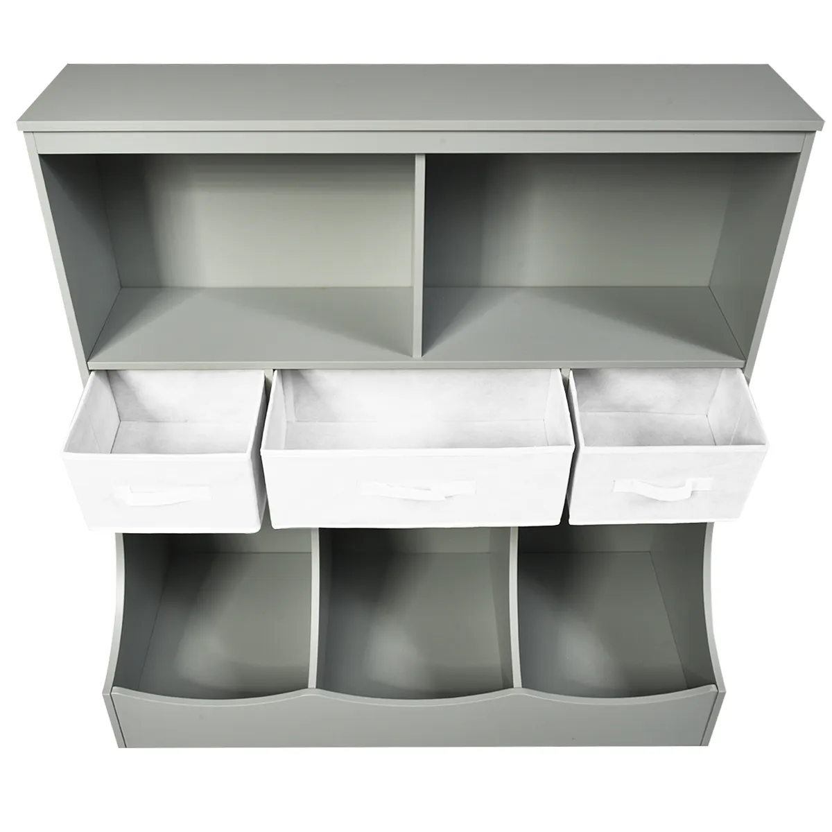 Ben je het beu om uw kinderen dagelijks achter te moeten ruimen? Stoor je de vele, rommelige boeken? Dan kan ons opbergrek met zijn drie niveaus je perfect helpen. Dankzij het stijlvolle uiterlijk past het rek in elke kamer, zoals kinderkamer, speelkamer of woonkamer. Het frame van dit rek biedt je twee ruime open planken, drie laden van verschillende maten en 3 vakken met een beschermende voorrand. De planken kun je ideaal gebruiken om boeken, tijdschriften, dvd’s, videospelletjes enz. op te bergen en de laden zijn perfect geschikt voor het opbergen van handschoenen, kleding en accessoires. De drie onderste vakken of dozen zijn perfect om voorwerpen te sorteren, zoals tekenspullen, poppen of ander speelgoed.