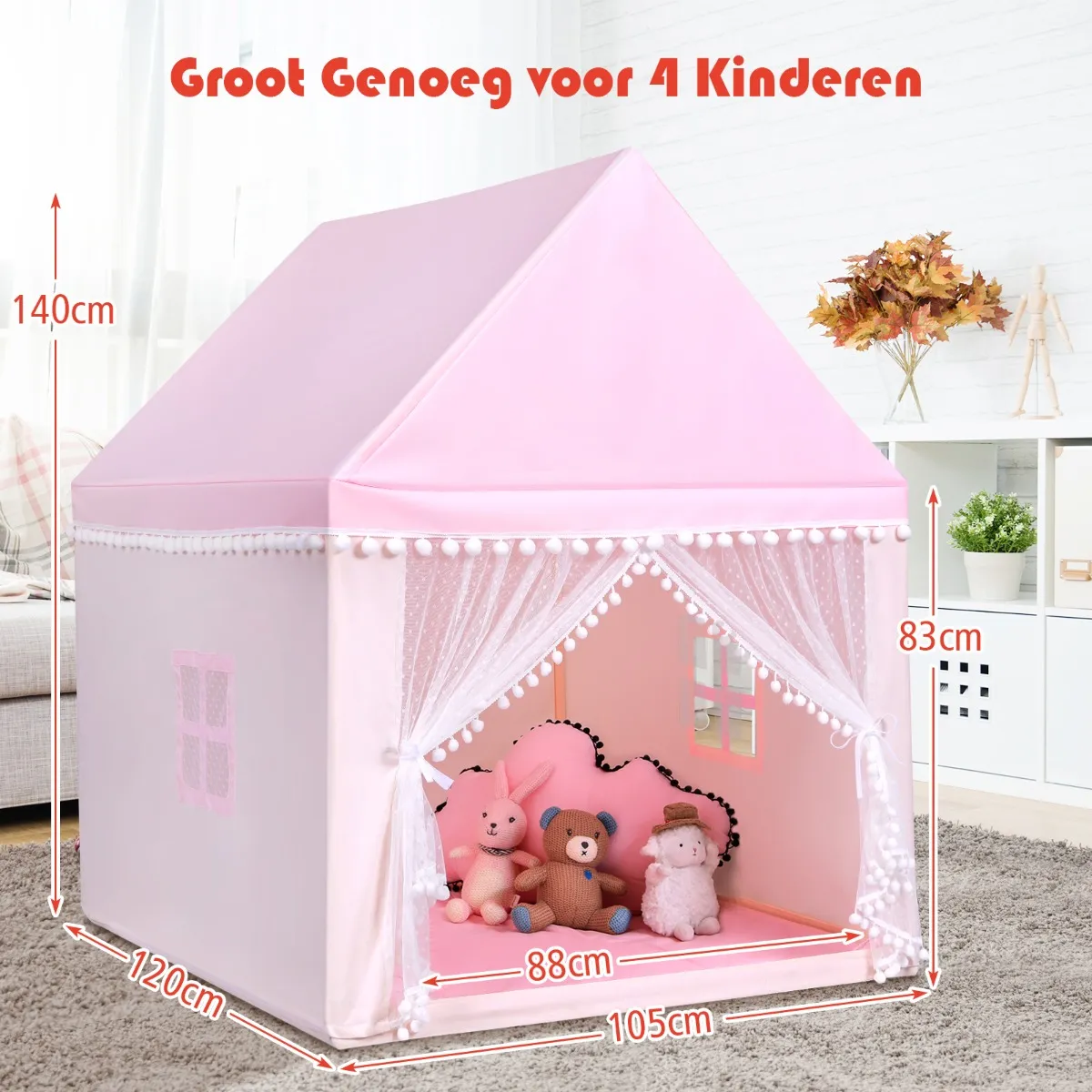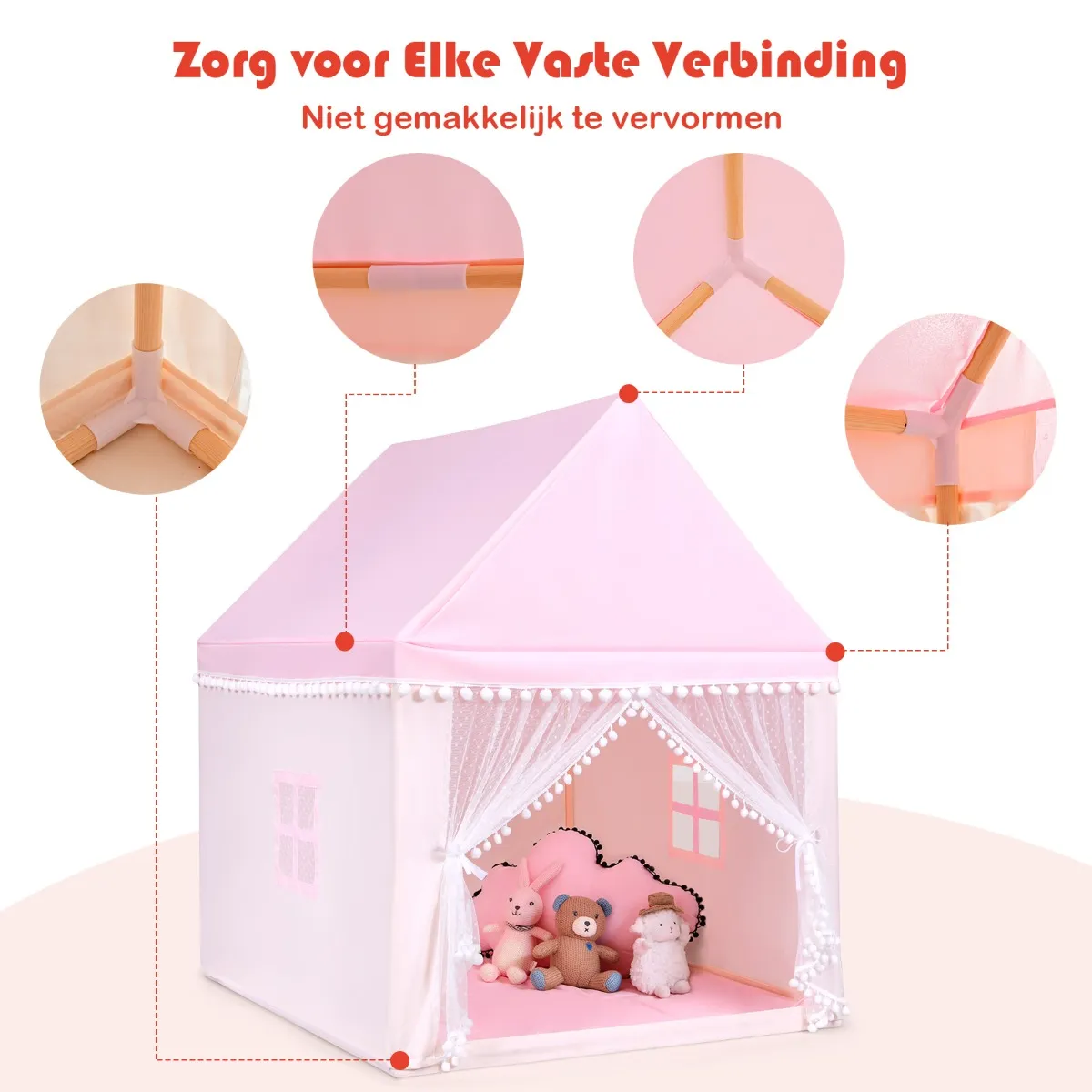 Net als een echt huis kan deze speelhuisjestent met zijn massief houten frame zeer stabiel zijn. Zachte en dikke deken is inbegrepen voor het creëren van een super comfortabel zitgevoel. Het hele huis is bedekt met niet-giftige en reukloze oxford-doeken, en u kunt er zeker van zijn dat uw kind altijd in een veilige omgeving zal zijn. Schattige deuren en ramen zijn niet alleen voor de decoratie, maar ook voor de luchtcirculatie.
