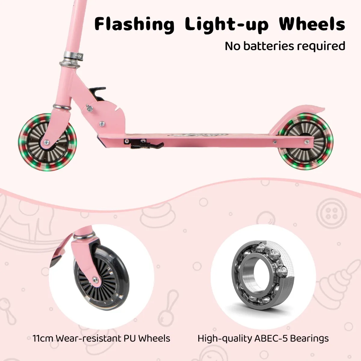 【Led-lichtwielen van PU】Deze inklapbare step is uitgerust met 2 lichtgevende led-wielen (geen batterijen nodig), die de rijervaring nog spannender maken. De 12 cm grote, slijtvaste PU-wielen met hoogwaardige ABEC-5-kogellagers zorgen voor een rustige en stabiele rit.