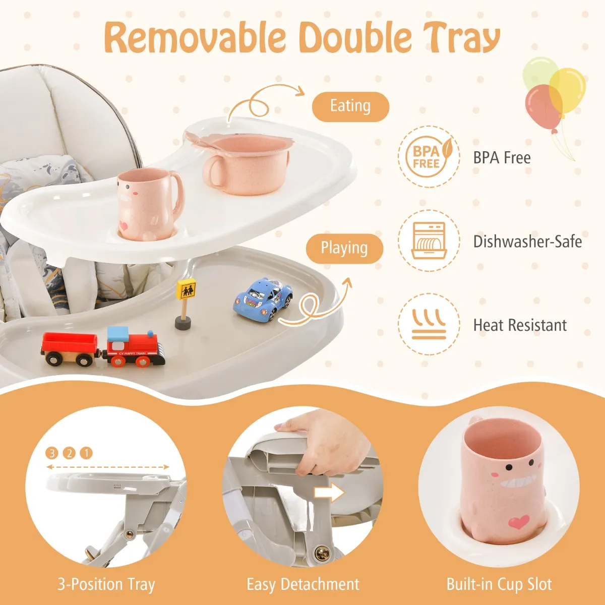 Eenvoudig onderhoud:Â Opruimen na de maaltijd is eenvoudig met deze kinderstoel. Het dienblad is afneembaar en vaatwasmachinebestendig voor extra gemak. Het afneembare zitkussen, gemaakt van waterbestendig, oliebestendig en huidvriendelijk PU, kan ook worden schoongeveegd met een vochtige doek.