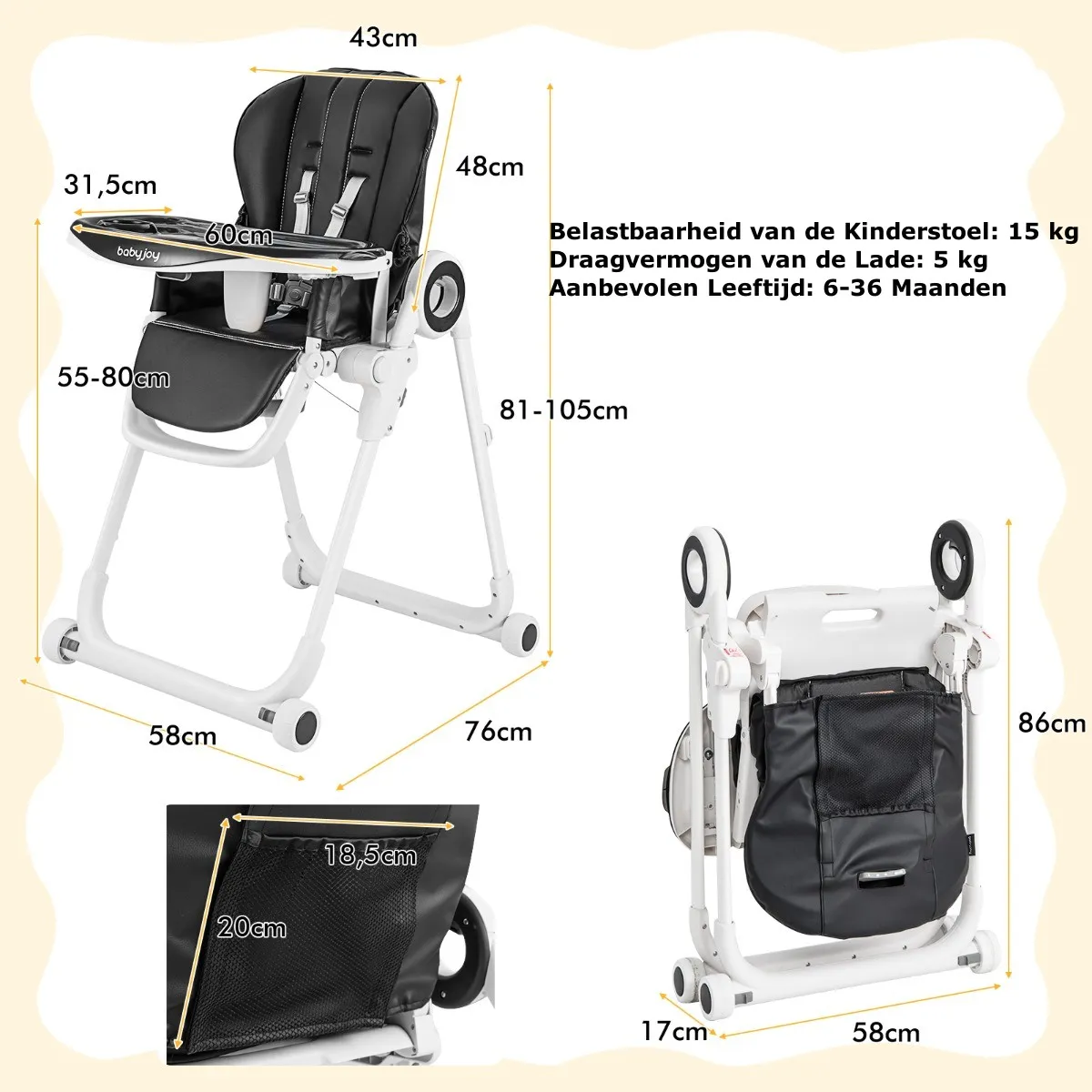 - Gewichtscapaciteit van de kinderstoel: 15 kg