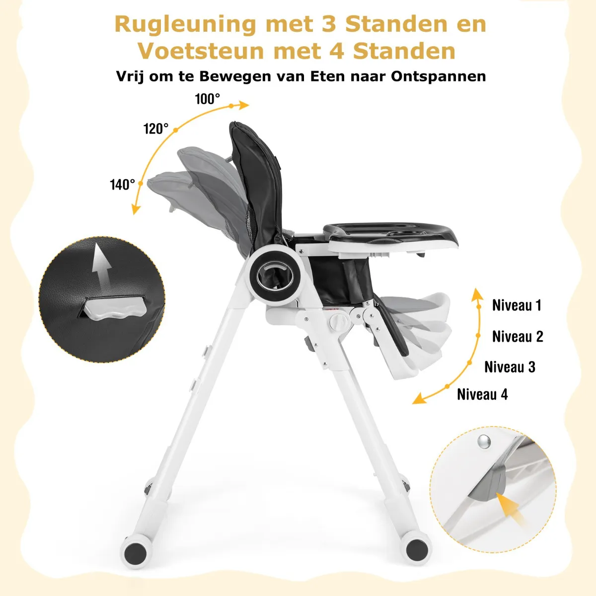 Voorzien van 6 verstelbare zithoogtes, 3-positie rugleuning, 4-positie voetsteun