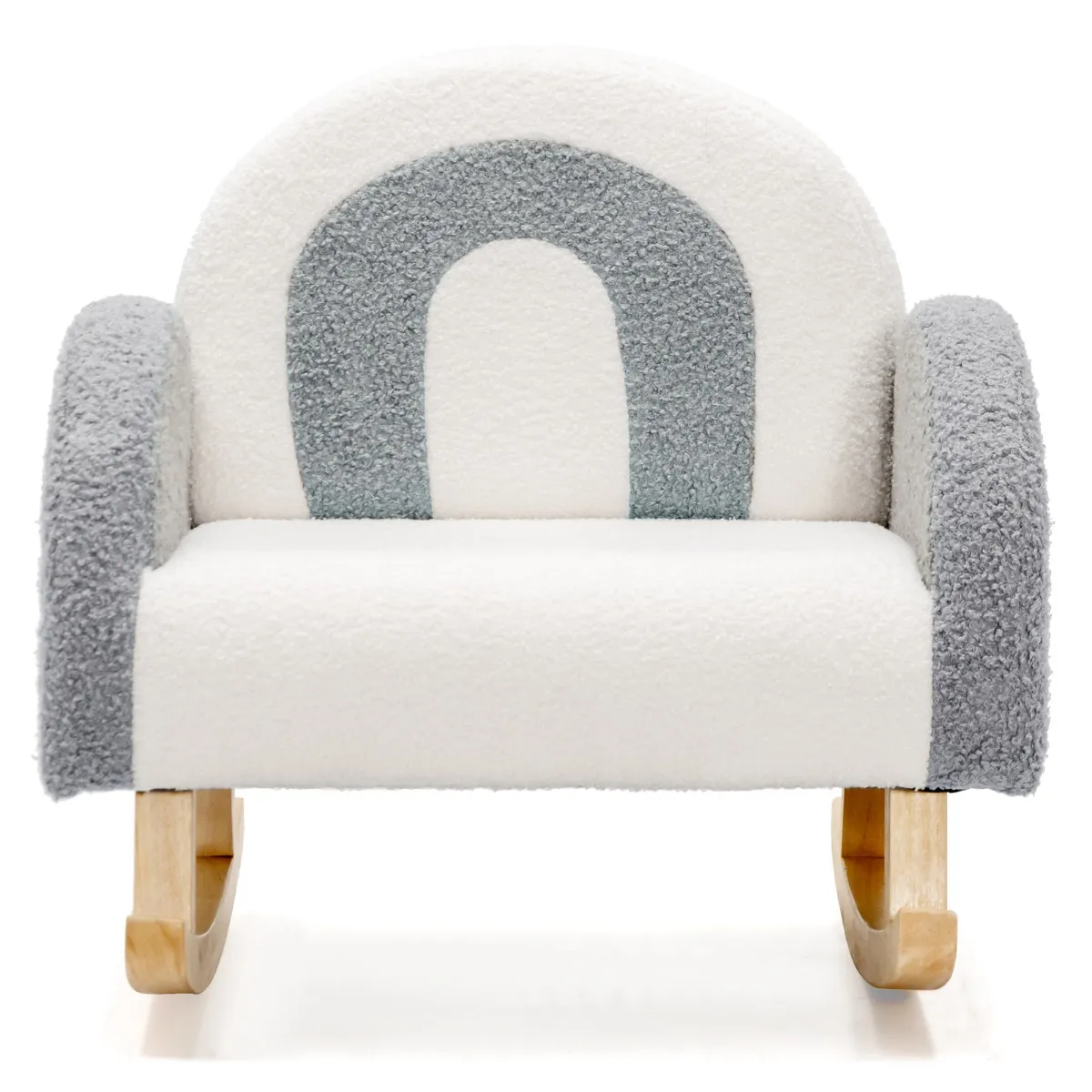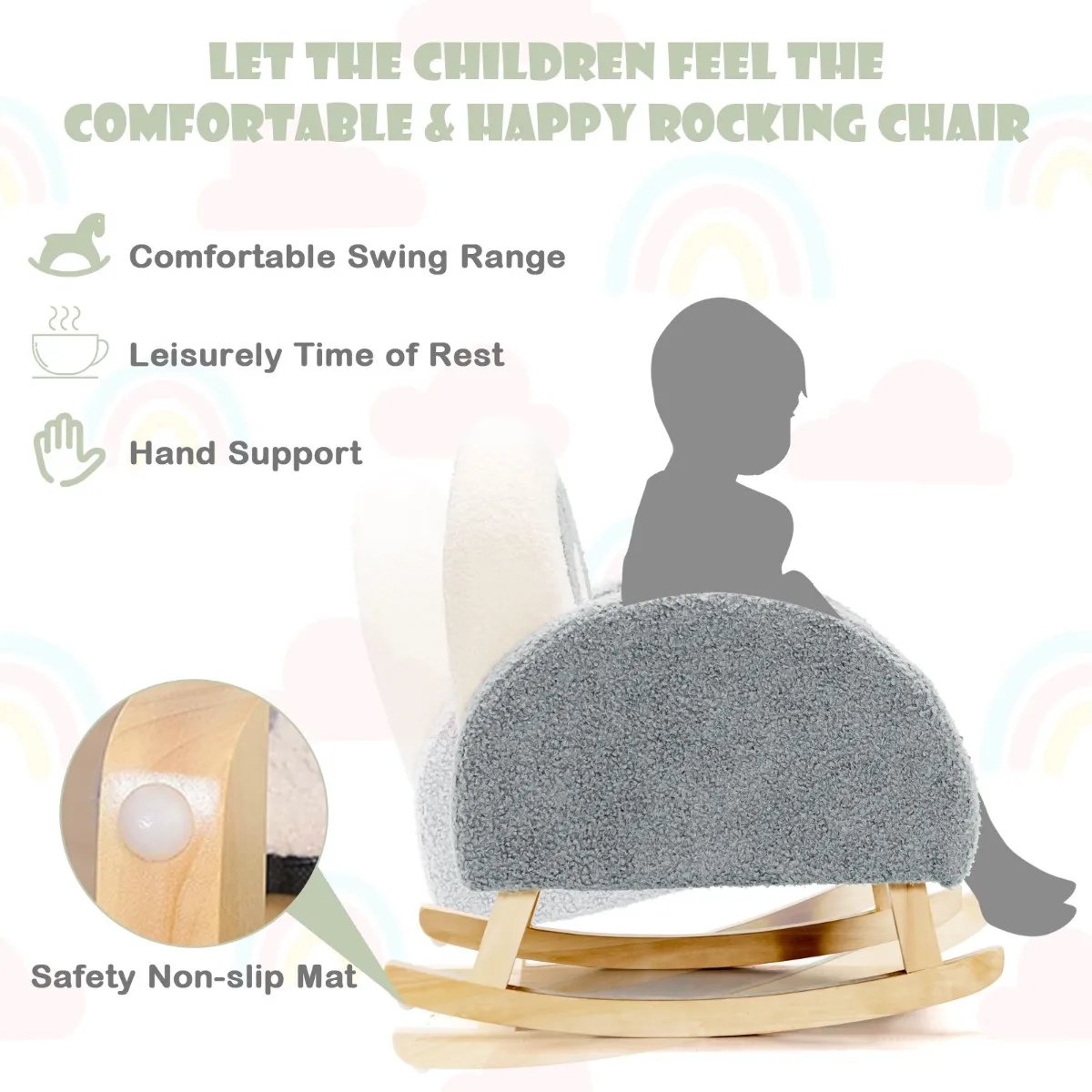 Door het zachte schommelen kunnen ze rustig schommelen. Ze kunnen het vrijelijk gebruiken om te eten, boeken te lezen, te spelen of te rusten. De gebogen rug ondersteunt hun rug goed, terwijl de ergonomische armleuningen hun armen perfect ondersteunen. De rugleuning en zitting zijn bedekt met een zachte veloursstof en zijn opgevuld met elastisch schuim voor uitstekende ondersteuning en optimaal comfort. Massief houten poten en antislipkussentjes zorgen ervoor dat hij stabiel op de vloer staat.