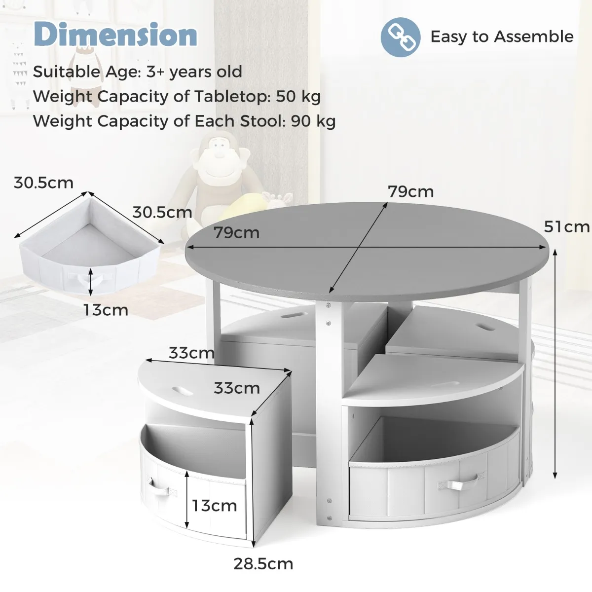 Inclusief ronde tafel, 4 krukjes, 4 verwijderbare en opvouwbare opbergbakken