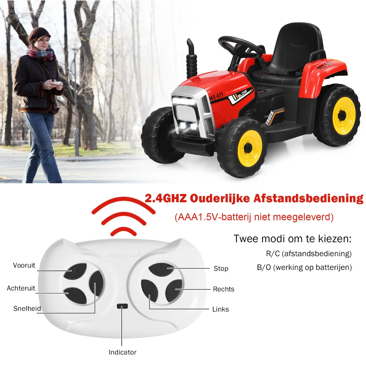【Batterijbediende trekker】: Deze elektrische trekker wordt aangedreven door een oplaadbare accu en kan door kinderen vrij worden bediend met het stuurwiel en het voetpedaal aan de binnenzijde. Bovendien kunnen kinderen met een hendel gemakkelijk heen en weer bewegen in hoge of lage snelheid.