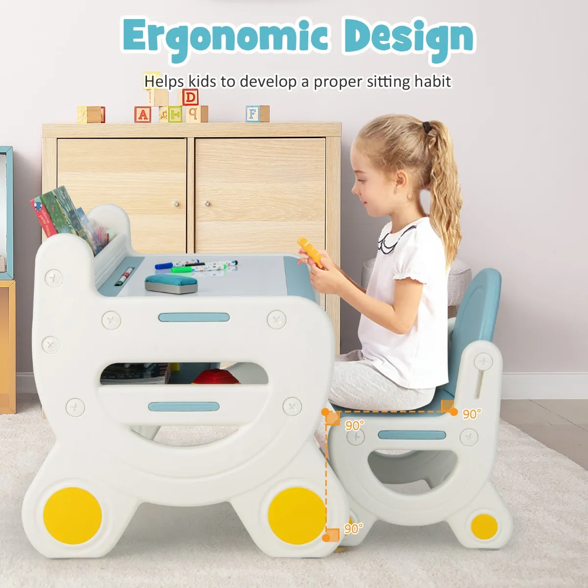 Het ergonomische ontwerp helpt kinderen bij het ontwikkelen van goede zitgewoonten