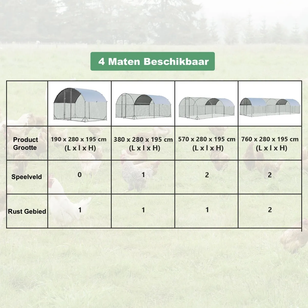 Eenvoudige installatie en veel ruimte: Alle onderdelen en componenten zijn stevig verpakt. De geïllustreerde handleiding en de benodigde hardware maken de montage moeiteloos. De totale afmetingen bedragen 190 x 280 x 195 cm (L x B x H), wat ruim genoeg is voor kleine en middelgrote dieren om te lopen, rennen, spelen en rusten. U kunt ook een houten hok opzetten om uw kippen een veiligere en comfortabelere omgeving te bieden.