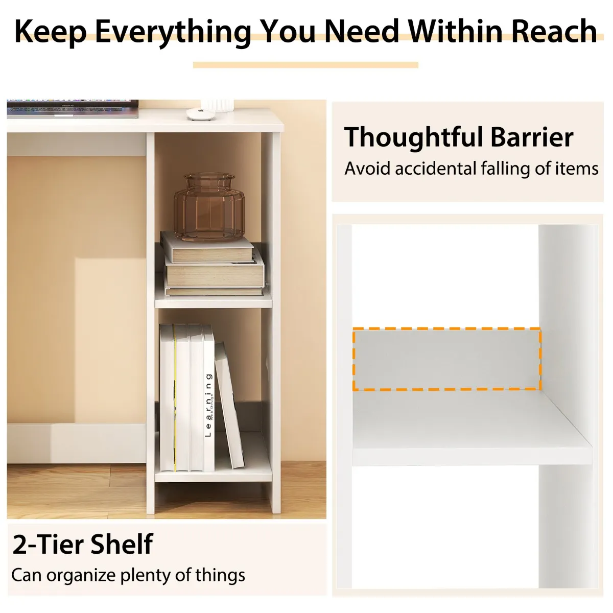 Extra opbergruimte en beenvrijheid: Het bureau is afgestemd op verschillende behoeften en biedt extra opbergruimte en voldoende ruimte voor je benen. Vooral het rek met twee niveaus biedt veel ruimte voor meer voorwerpen en beschikt bovendien over hoge barrières om te voorkomen dat voorwerpen eraf vallen.