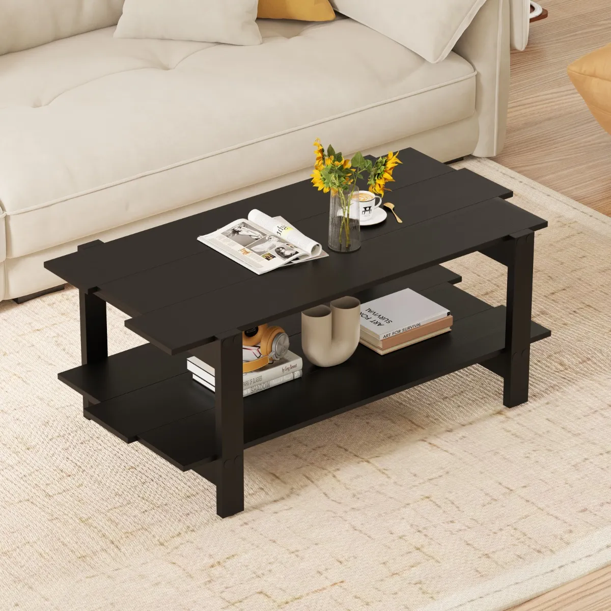【Opbergoplossing voor elke behoefte】: De salontafel heeft een ontwerp met twee niveaus, met een breed blad en een open plank eronder. Het biedt voldoende ruimte voor het opbergen en tentoonstellen van spullen zoals laptops, tijdschriften, snacks, drankjes, decoraties, etc.