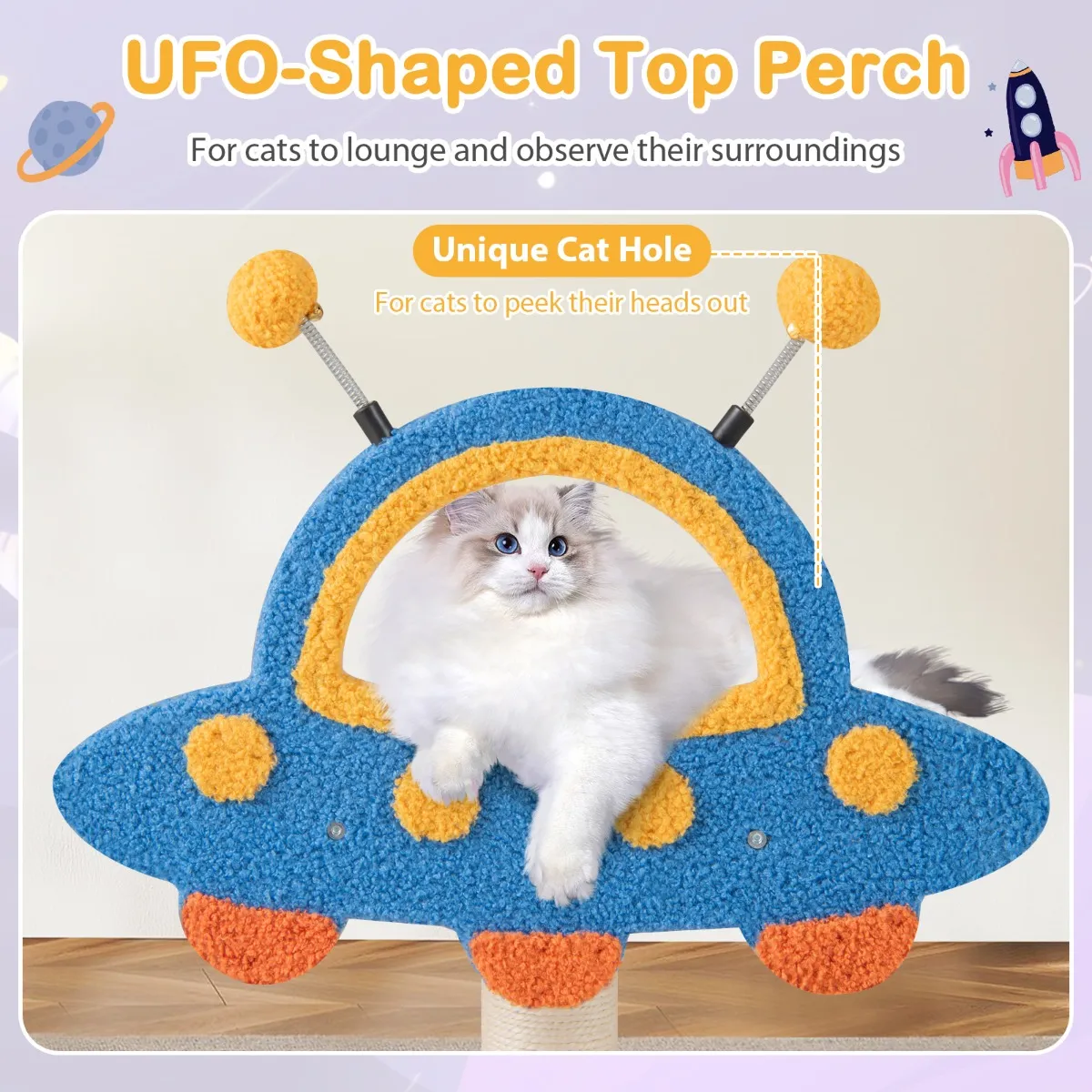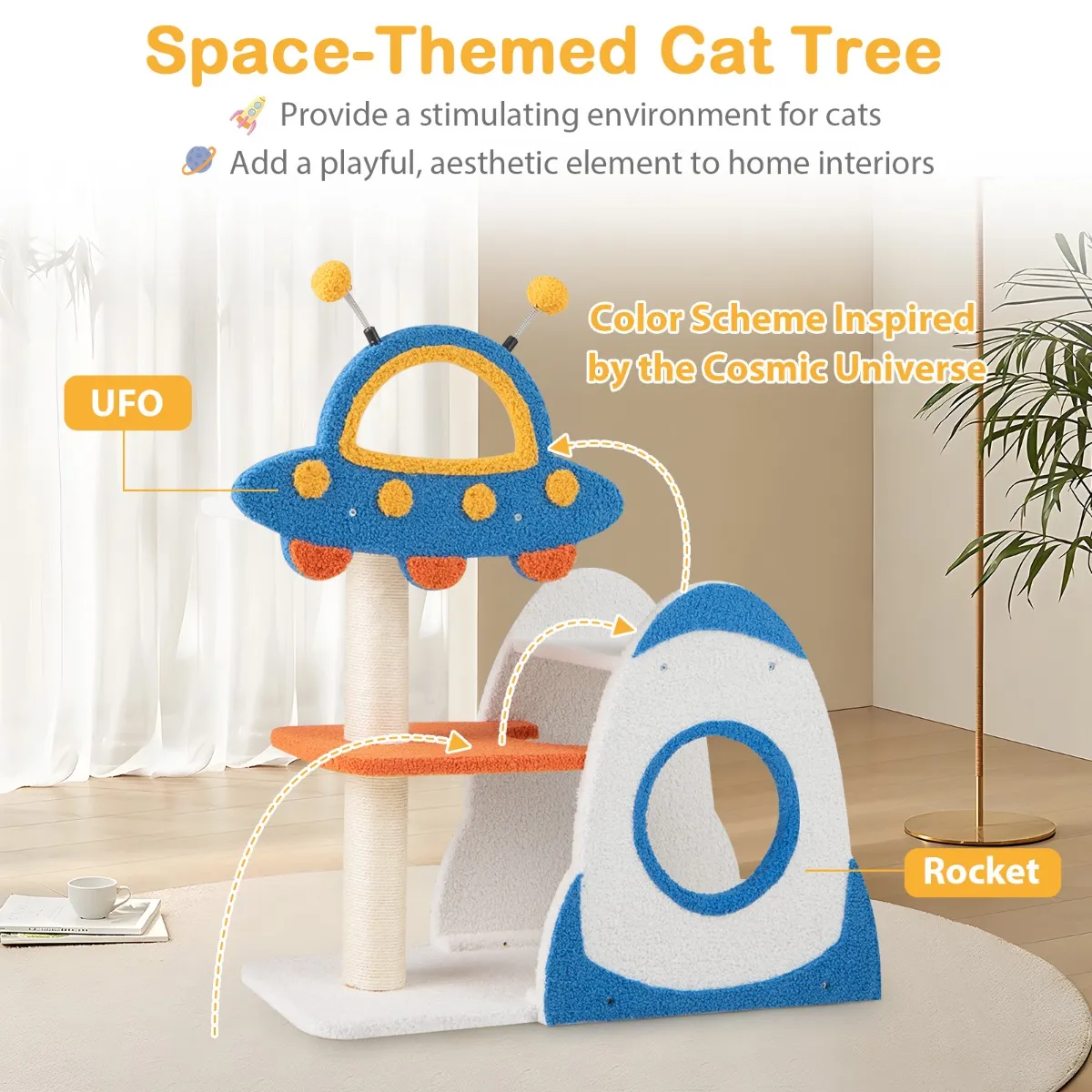 【Gezellige rustplaatsen】: Deze 87 cm hoge krabpaal beschikt over een UFO-platform met een uniek kattengat voor interactief spelen en ontdekken en een rakethuisje met twee verdiepingen voor luxe dutjes en verstopspellen.